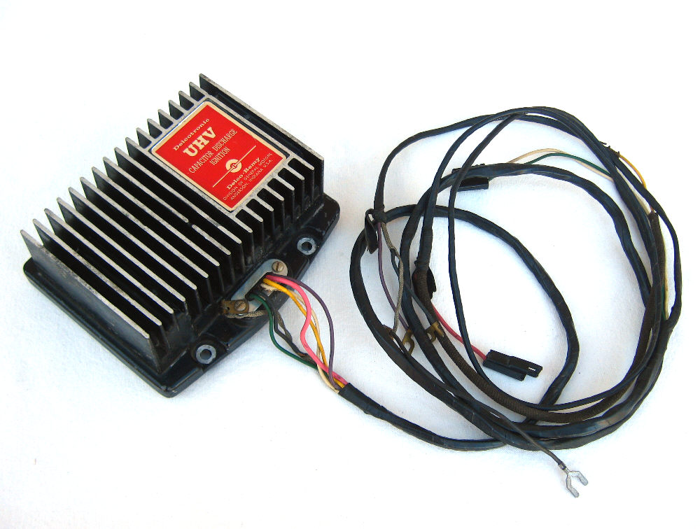 Ultra High Voltage capacitive discharge was a very neat Electronic Ignition option that GM offered back in the 1960s. The distributor cap does have shelf wear including one tower with a chip, otherwise is Brand New and very usable.