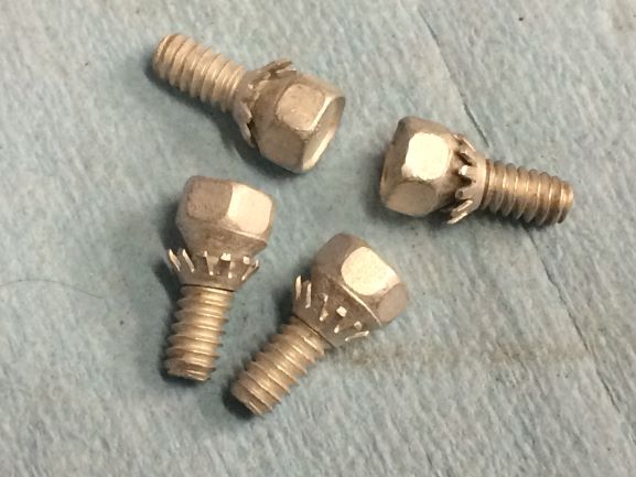 70 - 74 Chevelle, GTO, 442 top radiator plate mounting bolts. ER head marking. Correct rolled threads with recessed flanged head.$15. PPFF