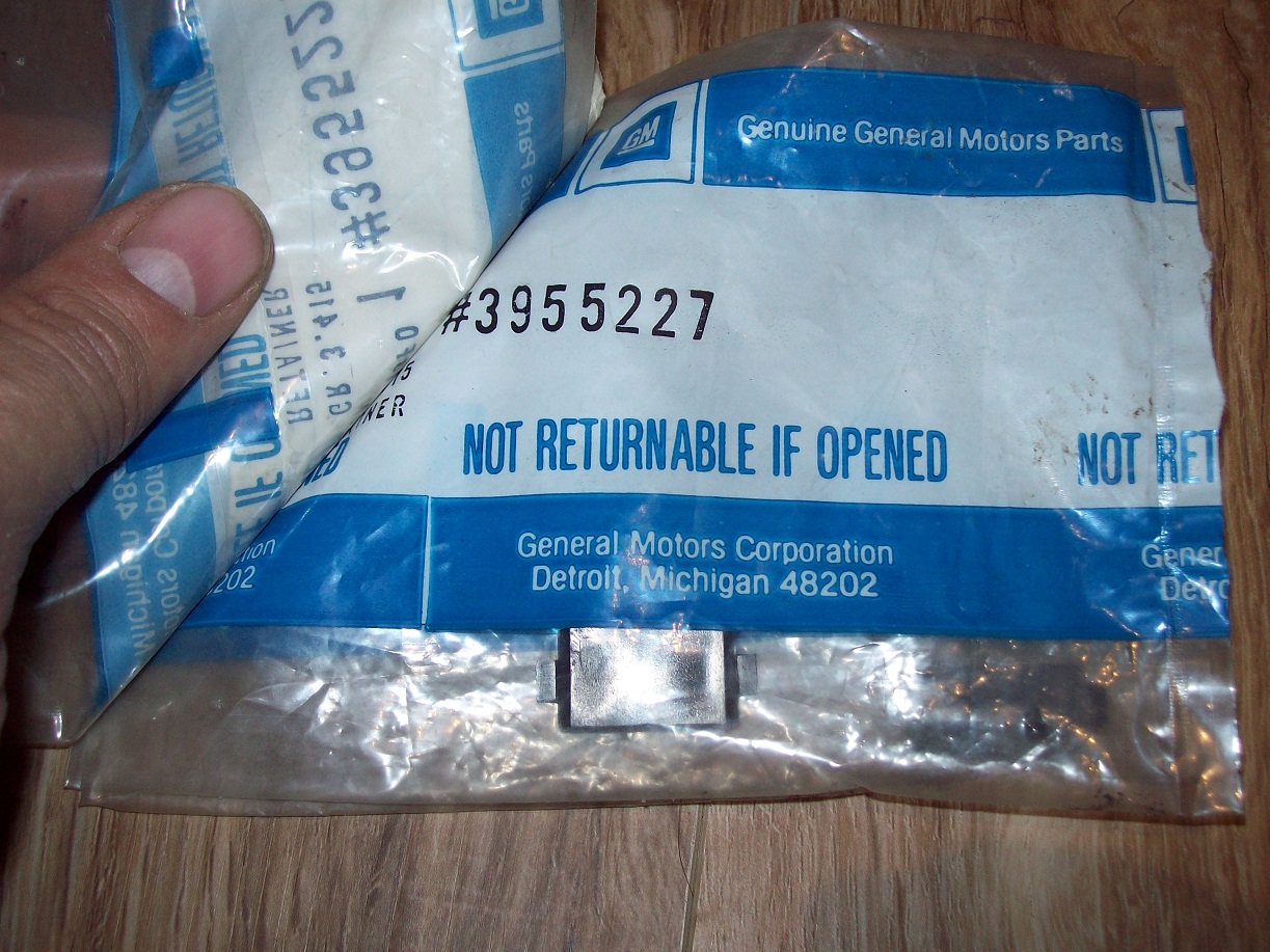 -3968556 C Vacuum Pod Bracket Shims RARE $40 Each *SOLD* -Two NOS Turbo 400/Cowl induction Kickdown switches "Made In Mexico" $60 each Both *SOLD* -Turbo 400/Cowl Induction "X" Stamped BW kick-down switch with "2676 V" gas pedal bracket BW assembly line $150 *SOLD* -Pair of Repro Cowl induction 1/8 clips with screws $25 -Assembly line BW Used 1/8 clip $25 *SOLD* -Cowl Induction Firewall Relays both Assembly line BW units $75 each *SOLD* -Cowl Hood Wire Clips $15 each (Only 2 left) -Cowl Hood Hose/Wire Clip $15 *SOLD* -"P" Screw with Plastic bushing $25 *SOLD* -Vacuum Pod Cowl Induction Metal Spacer and spare nut $25 for pair *SOLD* -Reproduction Valve flow for cowl induction door $35 -Cowl Hood rear Molding Trim $100 (Sorry NO shipping on this PICK UP ONLY) *SOLD* -COWL hood emblem all used but nice originals $10 each -Cowl induction Hood Pins $150 *SOLD* -NOS 3955227 Under hood Plastic Flapper Clips set of Three $65 *SOLD* -Cowl Induction Q-Jet Air Assembly Stud $50 *SOLD* Shipping Extra all prices USD Paypal "Friends"