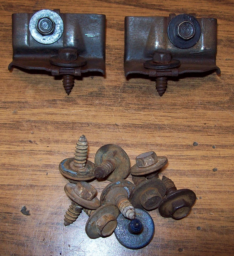 Tough to find a Complete set with clips and bolts, both stamped Left and Right with "PW" manufacturers logo. A Sand blast will make these perfect as there is only surface rust. Perfect for a "Survivor" AS IS. $100 for the pair USD, Shipping $8 I also have spare bolts for this location for $10 Each. Paypal "Friends"