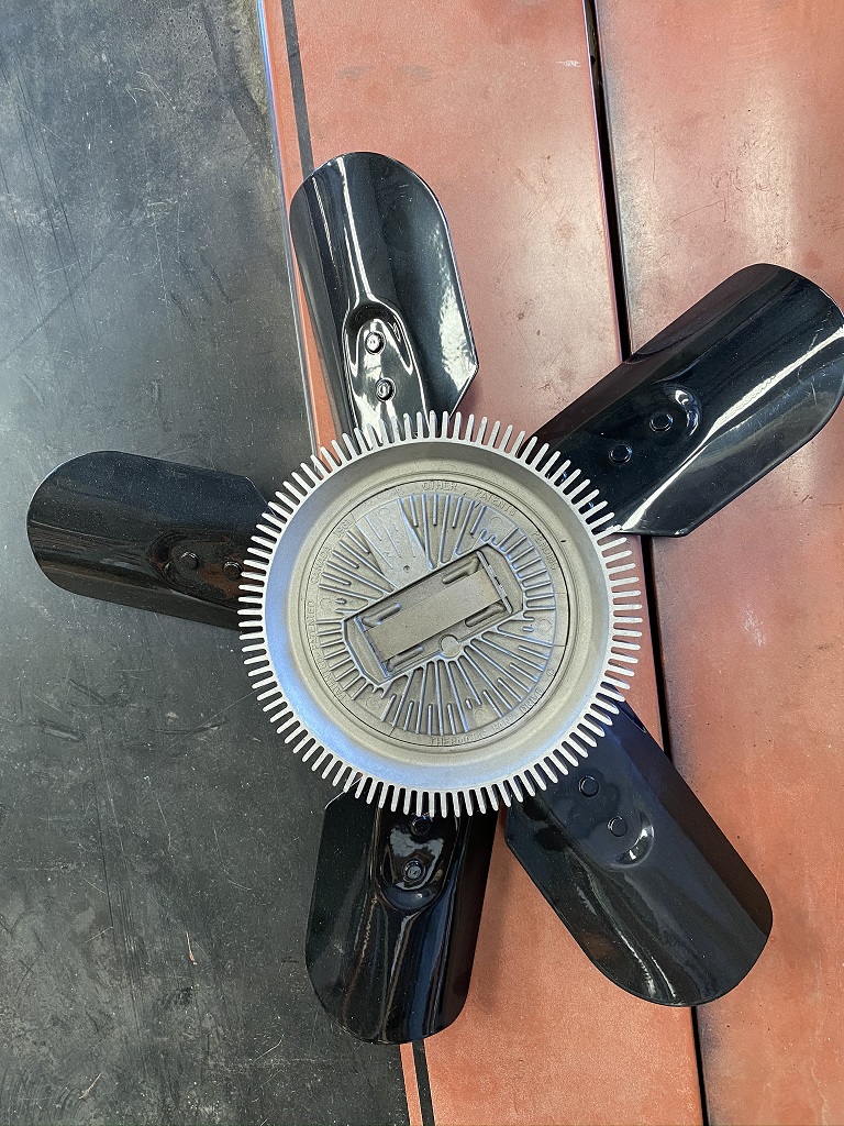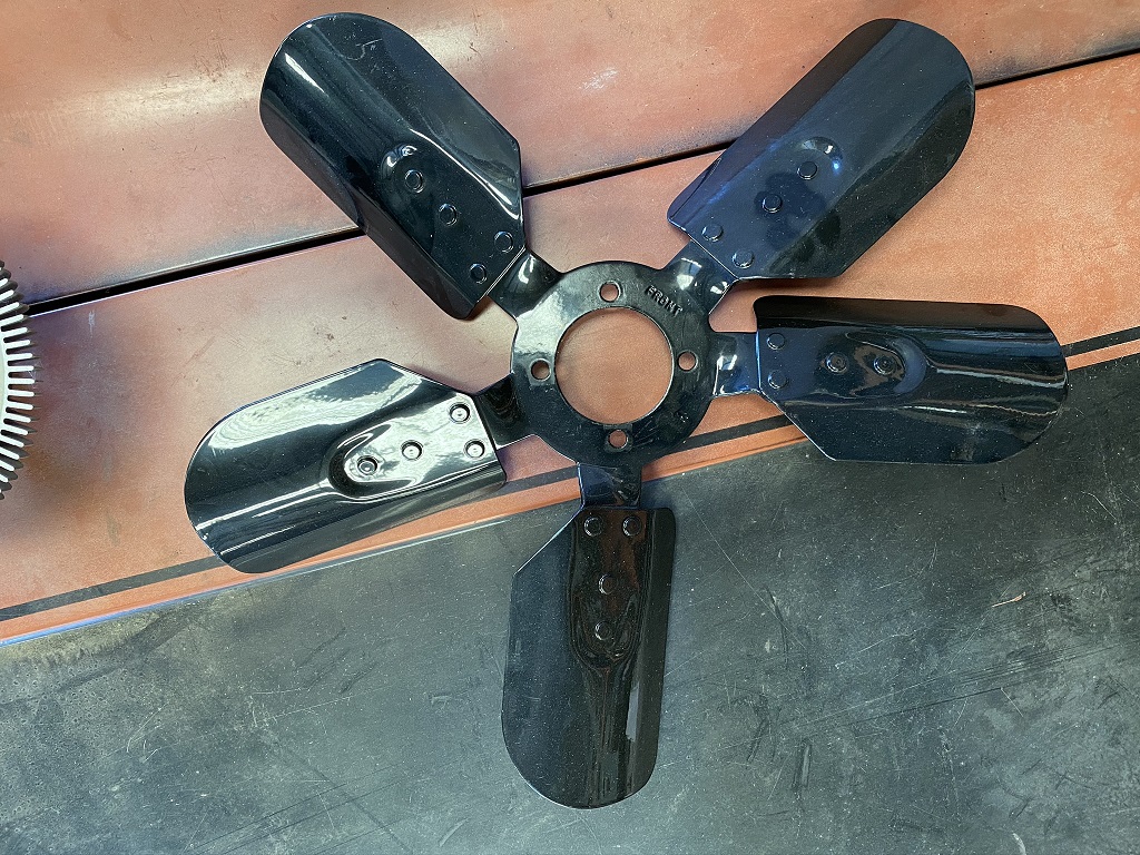 I have a very nice real 5 blade/4 rivet fan (part# 3871276) and correct fan clutch (part# 3927103) for a 68 L78 or 68 Z/28. 3.25 bolt pattern.