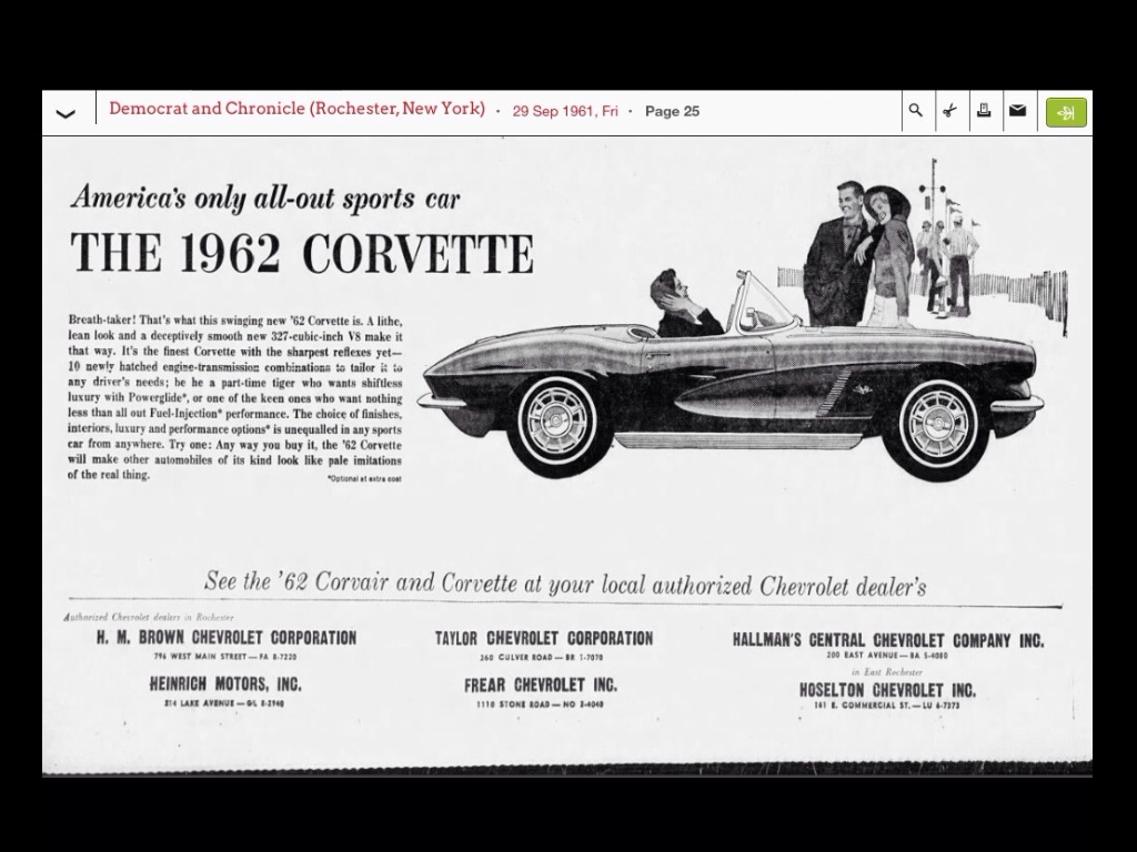 I also believe they sold the 427 woodgrain sided station wagon that's sitting in the GMs museum. It's rumored to have drag racing history. I grew up in Rochester and worked with the daughter of the dealership owner. They actually did some work on my 74 Z back in the early 80s. I needed to have the studs replaced on my axles.