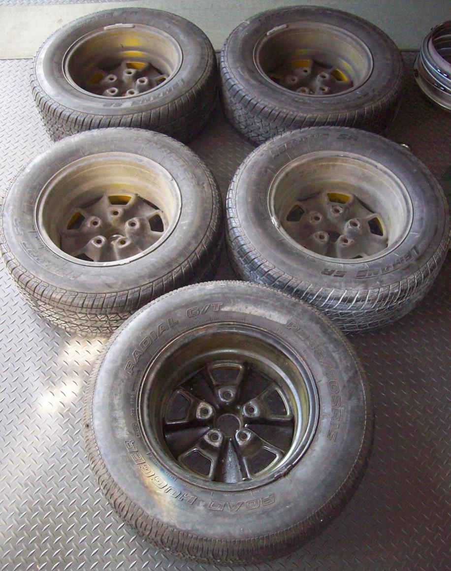 Excellent condition and tires are still useable with plenty of tread. You get all 5 Rims and tires for $1200 Canuck bucks or B.O. Date codes are 1971 and 1972. True GM "AU" stamped rims. Trim Rings are GM in Excellent condition, Caps I think are Repro.