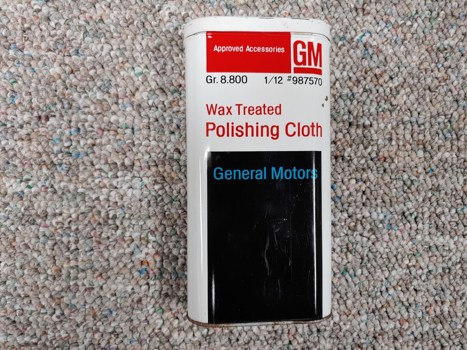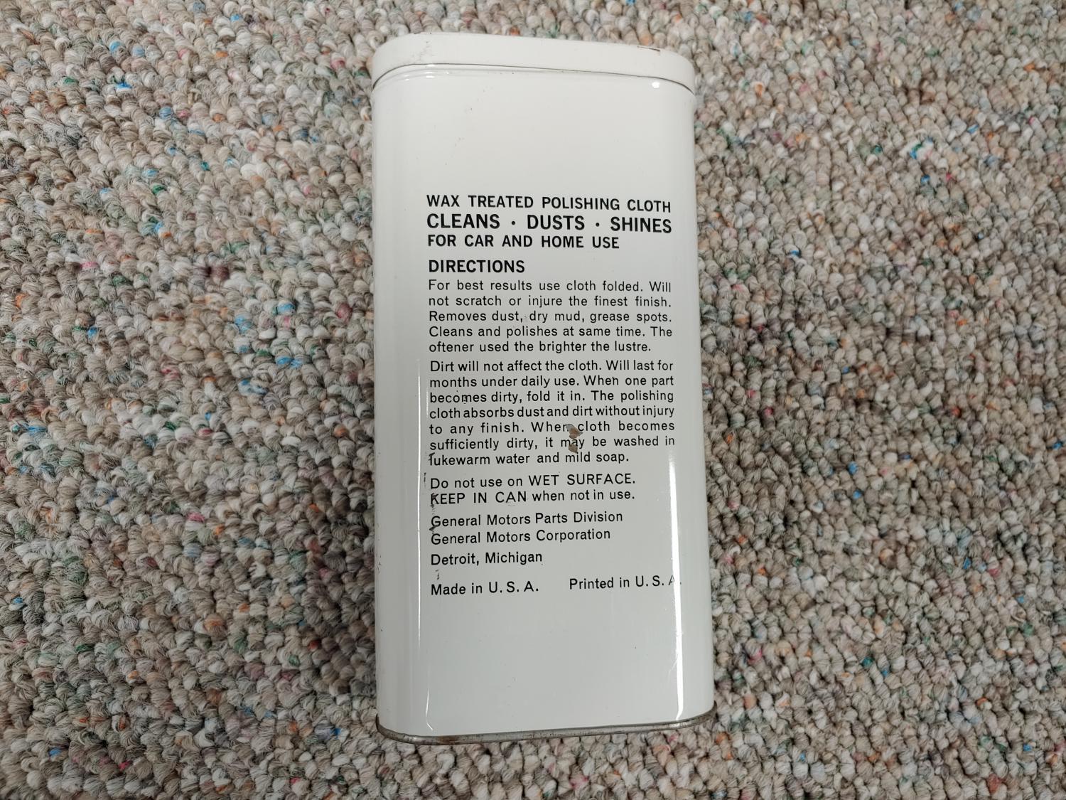 GM Polishing cloth tin minus the cloth. In good shape. Used with some marks and little dings. Great for display.