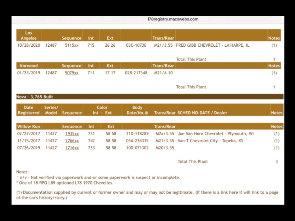 Auction details note Darren as a past owner also Original Build Sheet. The L78 registry includes the Gibb detail too so probably not new info? Did Darren originally get this car from you Stefano or some connection? ![]() ![]() ~ Pete .