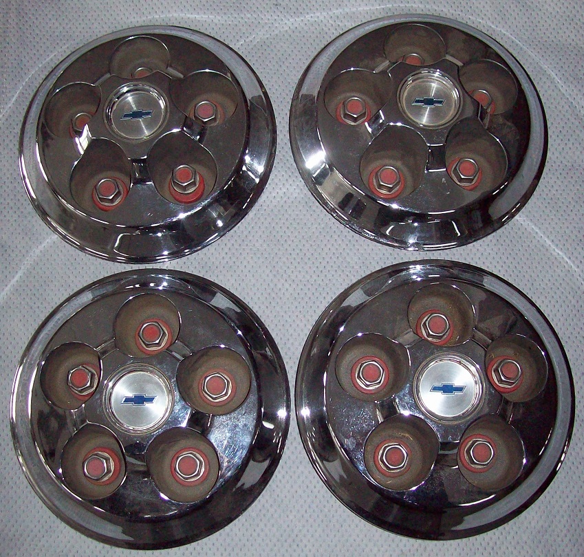 Something you don't see that often are a set of these Accessory Over the Counter 993804 GM 1969 1970 Bolt On Caps, Will fit many steelie rims for Chevelle Camaro and Nova. Beautiful Mint Set In original GM Box.