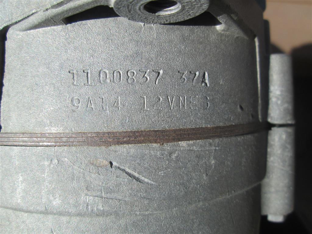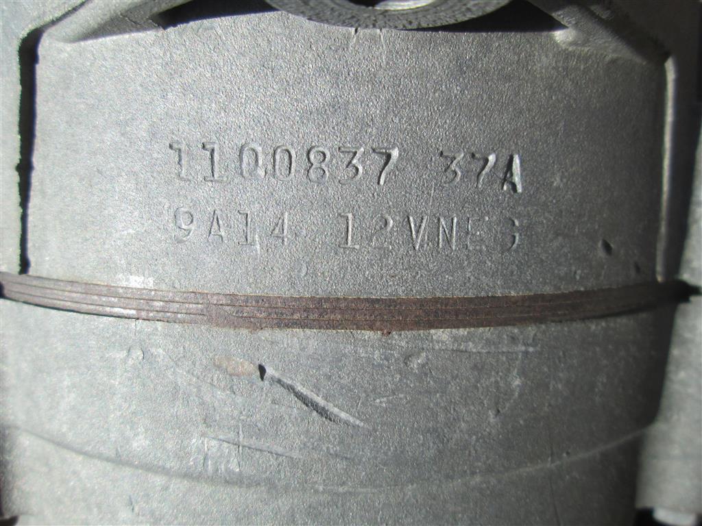 This is an original 1100837 alternator. The date code is 9A14 which decodes as January 14th, 1969. It is in good cosmetic condition with no pitting, etc. There are a couple scrapes on the rear case near the date which I imagine are from tensioning the belt. The pulley spins well. I'm sure it should be rebuilt before use. This is a real deal original 1100837 alternator with a great date.