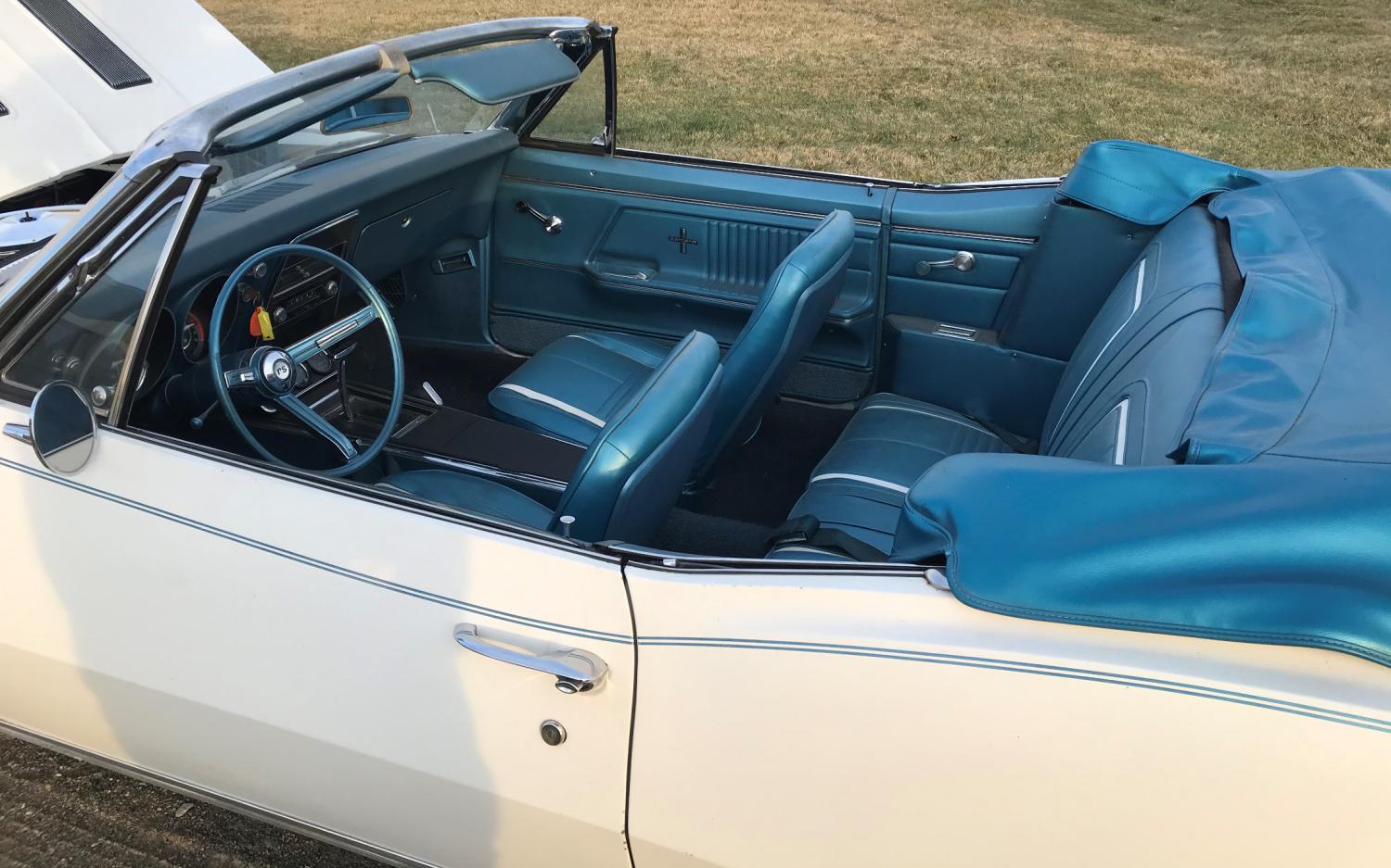 Real 0-1 coded 350/PG car. Fisher Body Norwood white paint still visible on the trim tag. In many ways this car is an absolute time capsule. One repaint in 1976, where the car was partially disguised at that time as an RS minus the blue front bumble bee stripe all to discourage theft at that time.