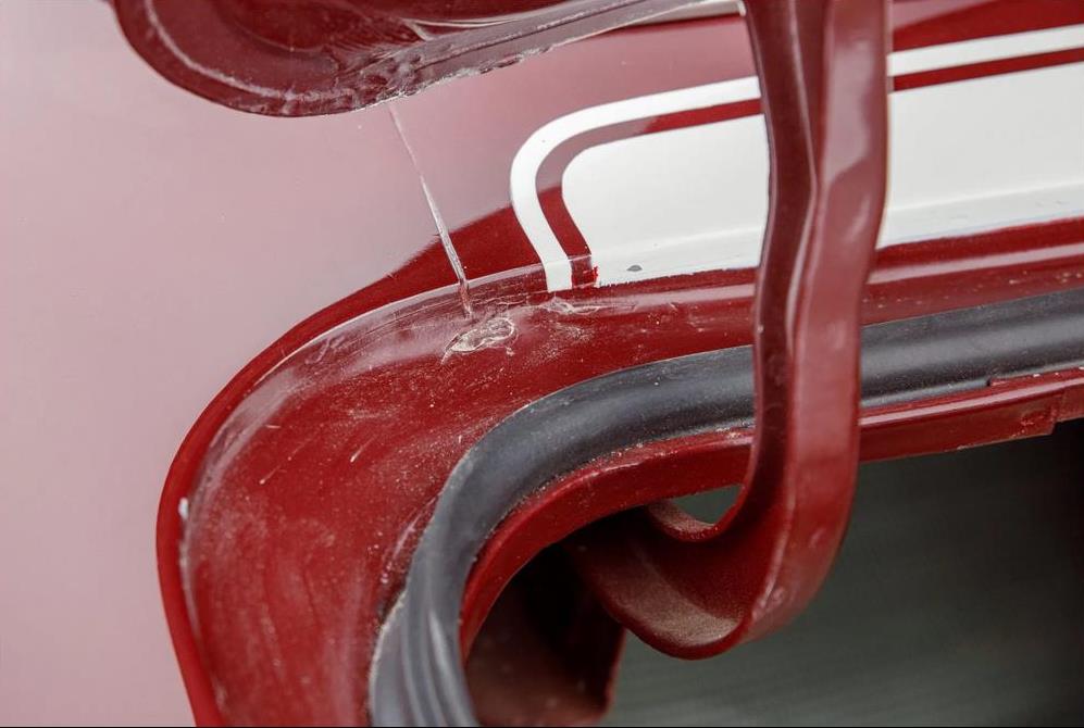 The car originally had RED stripes you can see where the tape pulled in the trunk jamb and exposed the RED.