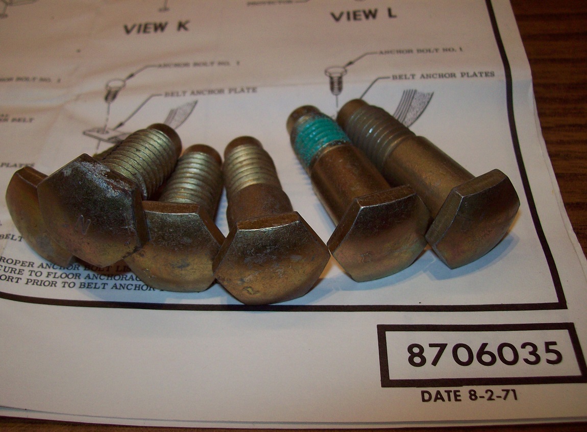 Six NOS Seat Belt Bolts Fits Many Models Different Sizes