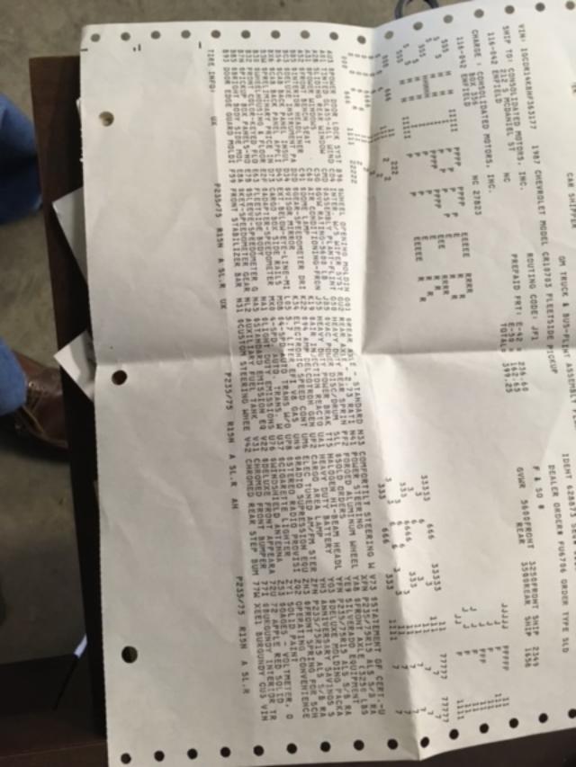 Here is a low mile 1987 c10 silverado loaded from the factory with a/c,pwr windows,locks,bumper guards,and some rare options like the aluminum wheels and bed rails whch u will see are on the buildsheet,beautiful red/red color combo and never used as a truck always a southern truck and still resides in the south at a friends ,the inside of the bed looks just as nice as the outside.Wish u could go back to 1987 and buy a fuel injected short box here is your chance asking $27,500 thank u...570-854-0896