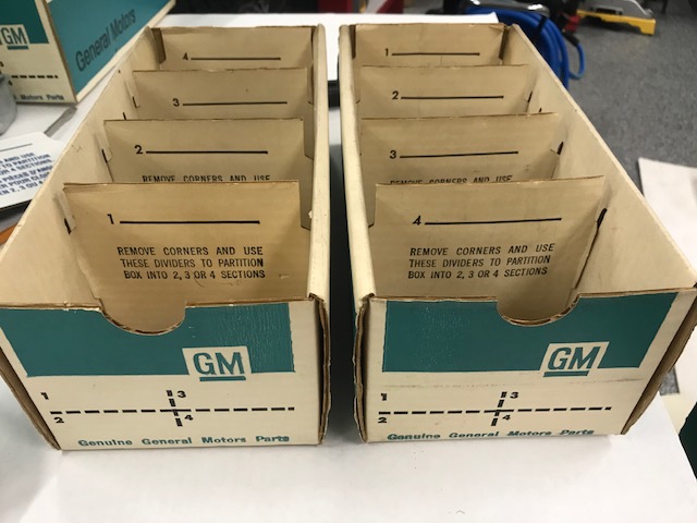 These are great for putting small parts in them. Great for your GM memoribilia These can be unfolded and lay flat for shipping. I have 9 of these. They are not all perfect as they were used in parts dept. $16 each + shipping |