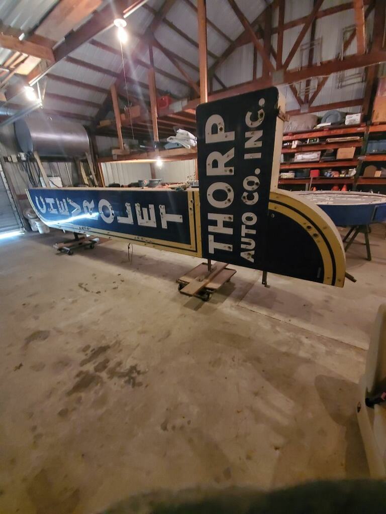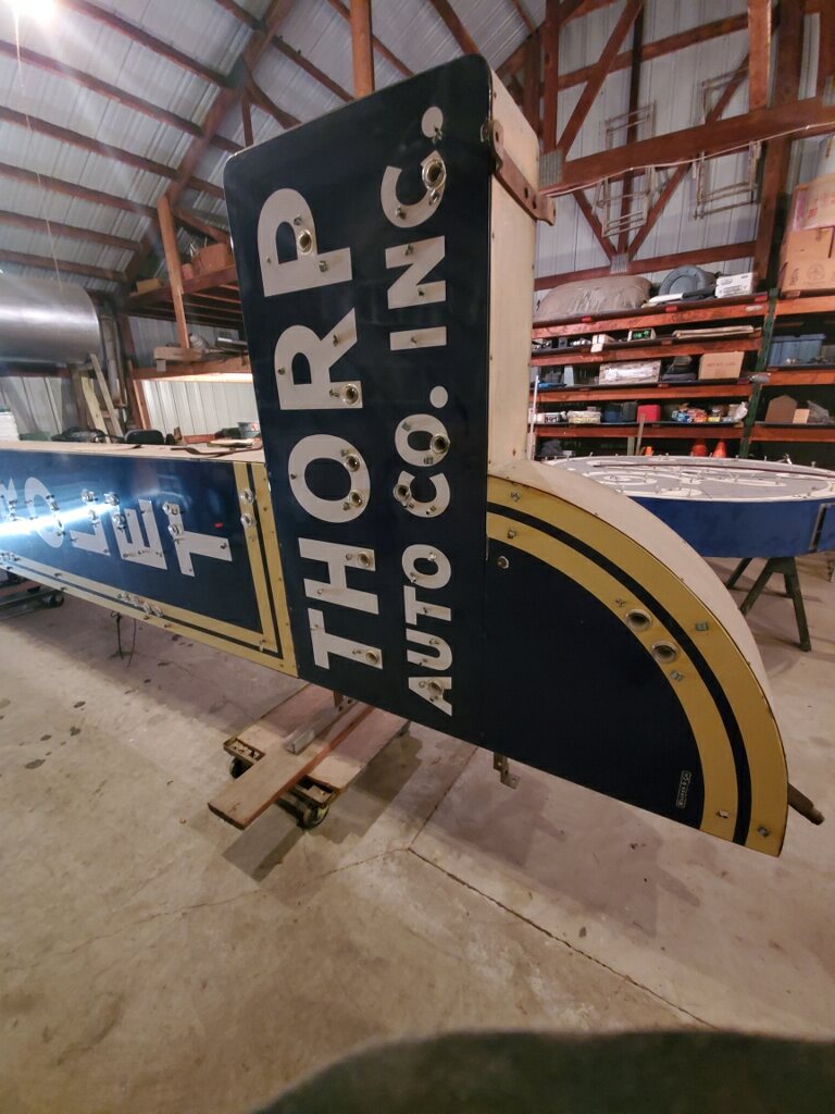 Dimensions 32 “x242”x12” Thorpe 63” Original neon sign Double-sided Porcelain untouched Non-working condition Walker & Co. Detroit Pick up only ! INDY $32,500 |