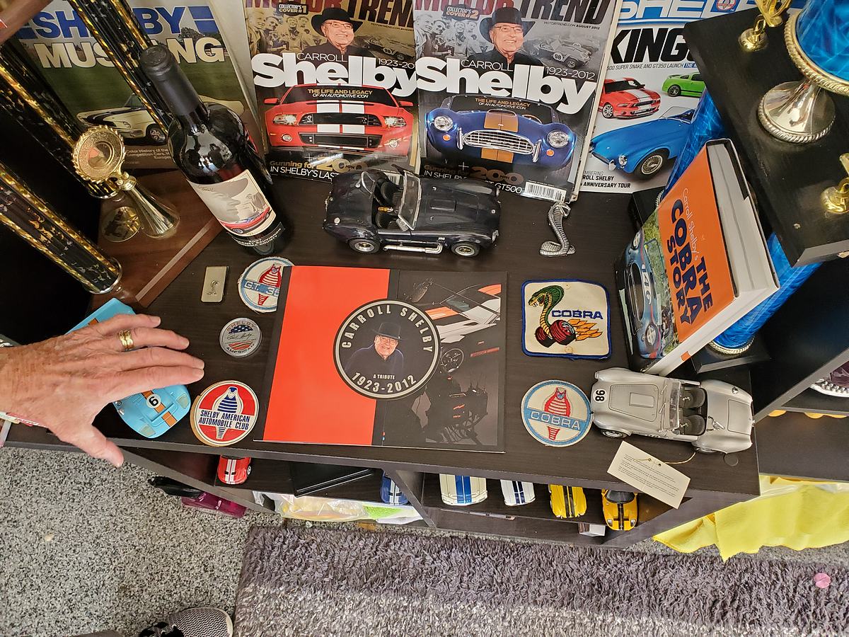 The Shelby related patches were probably purchased at that same time and show, except for the large Cobra patch. Believe it or not I think I got that as a young boy when my parents took me to the NY Auto Show in 1970 (I could be mistaken). Unfortunately, I tacked it up on my wall with thumb tacks and they left rust marks. The white background has yellowed quite a bit too. ALREADY SPOKEN FOR