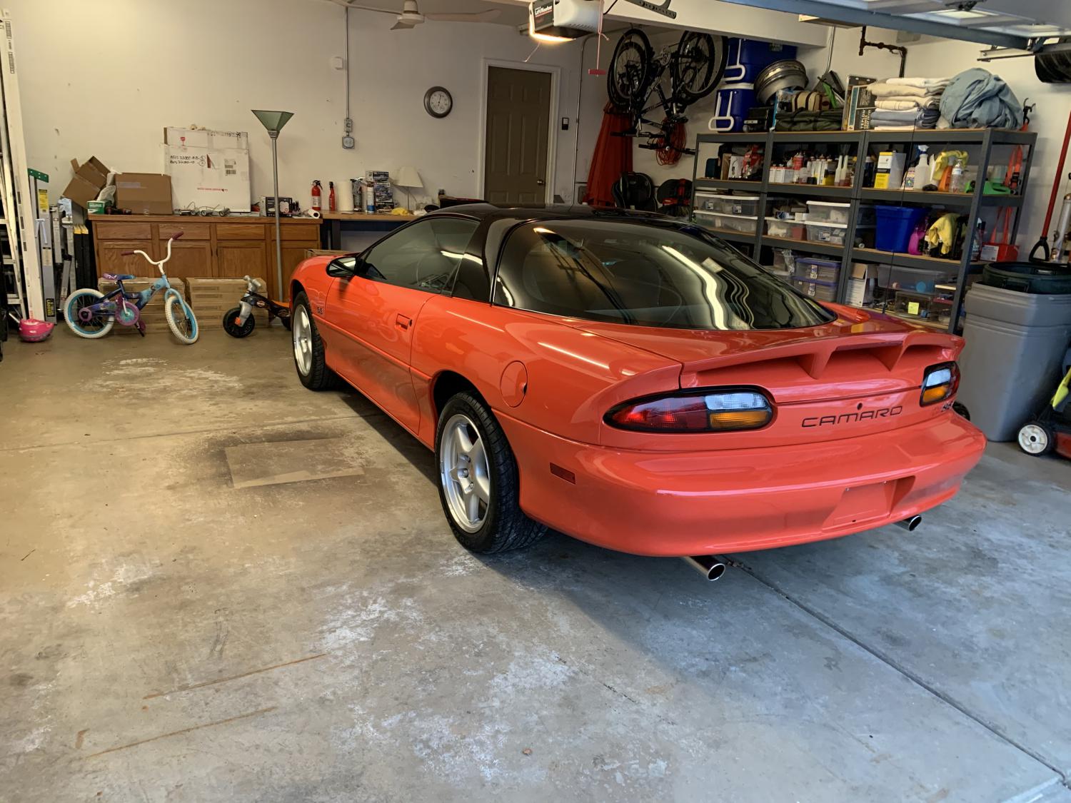 1999 Camaro SS, one of 56 (or 54 depending on the source) Hugger Orange six-speed coupes. As to how many were slick tops with cloth seats, no one knows but I would estimate fewer than 10. 4 owner car with 16K original miles. In near-show condition. Still on the original tires. Runs and drives perfect. Every piece of paper back to new including the hand-written dealer order. Has a few day 2 mods including Hurst T-handle, Flowmaster muffler, CAGS delete, and K&N filter, otherwise all stock. PM me if you have interest. Thanks, Nick |