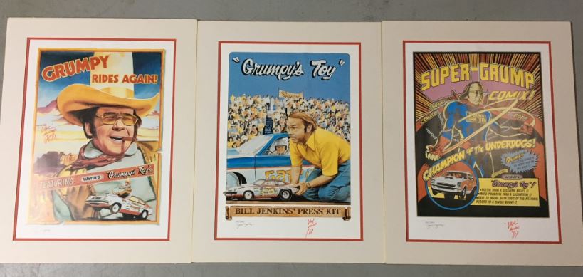 Thinning the collection of duplicates and other cool items. All are 100% authentic and period correct. No reproductions. - "The Wing-Thing Flies Again" - Hemi Daytona 'K&K Insurance' car poster. I purchased this through Mecum Auctions by way of the Steve Juliano Collection after he died. I always loved this Daytona and at the time, needed the poster. I've never seen another. It came framed from Steve's collection and I left it as is. $2,000 OBO. This is what I paid less freight. - Grumpy Jenkins Press Kit Posters, signed by Jenkins, professionally mounted. Great pieces with clear colors and little if any fading. I bought these from the former girlfriend of the artist who authenticated them with a signed letter. I paid too much for them and now would like someone else to enjoy them. These should be all mid-1970s. $400.00 shipped/insured. I can send more pics however needed. All prices are OBO.