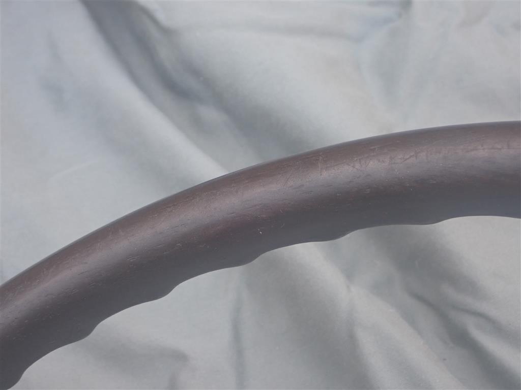 This wheel is certainly no virgin but neither are you. It is a nice survivor overall with obvious cracks at the 6 and 9 o clock positions as show. The rim is not bent or bowed. The wood color and grain is quite nice. This wheel would be right at home on a original car that has light wear throughout or I'm sure it could be taken to the next level in the right hands. $550 Jason |