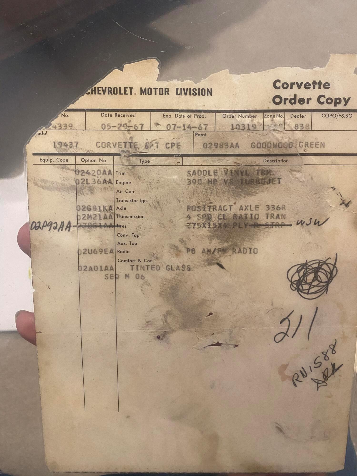 Hey everyone. I know this maybe isn’t the perfect site but I know many will appreciate this one. I’m letting go of my 100% original survivor 1967 corvette coupe. Car is a true time capsule and had been maintained its whole life. Needs nothing. Car currently is at 29,4xx miles and will move slightly as I do take it out on nice days. Asking 145k or reasonable offer. 1967 corvette coupe. 29,4xx miles L36 V8 turbojet 427/390hp M21 4 speed close ratio Goodwood green with some perfect patina. Saddle Vinyl Interior 336R Positract Axle White Side Wall Tires AM/FM Radio Tinted Glass The only thing that currently doesn’t work is the clock. Awards: NCRS Top Flight in 2013 Bloomington gold benchmark in 2015 I also have the original tank sheet, complete owner history, all judging sheets, and service records to go with the car. Only trade I’m interested in would be a c6 zr1 plus cash or a c7 zr1. Located in Eastern Pennsylvania and can arrange for any interest party to see the car/test drive with a deposit. I also have additional pictures/video upon request. Private message or me Cell is best (609-381-0182) for any questions/additional pictures. Thank you, Steven |