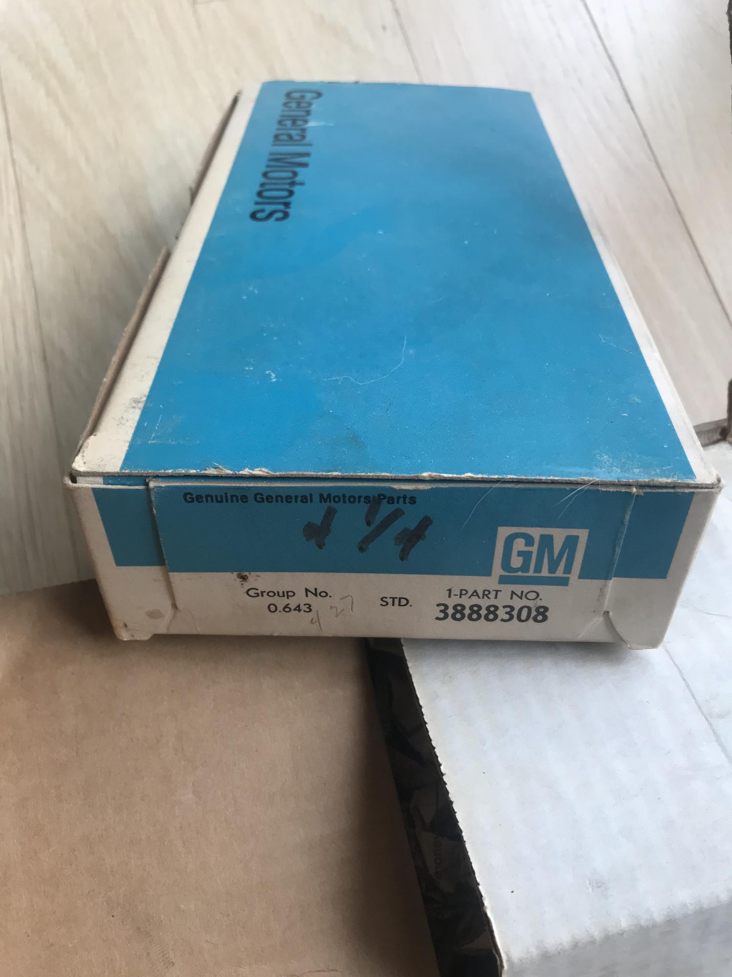 Piston #3947886 and Ring set part #3888308. Yes these are really NOS pistons. The box the pistons are in is not original BUT...you can see they are all wrapped in and old Detroit News Newspaper dated August 2nd, 1972...Pretty Cool. These are in perfect original condition and have always been stored indoors..They have the original Pins and Locks (8 of locks are installed in pistons and the other 8 are separate. The rings are NOT the Moly style but are listed as being for the 427 and 454 with standard 4.250 bore. Price is $1500 delivered in the U.S. only...Will Ship Fed Ex... Thanks.... RA |