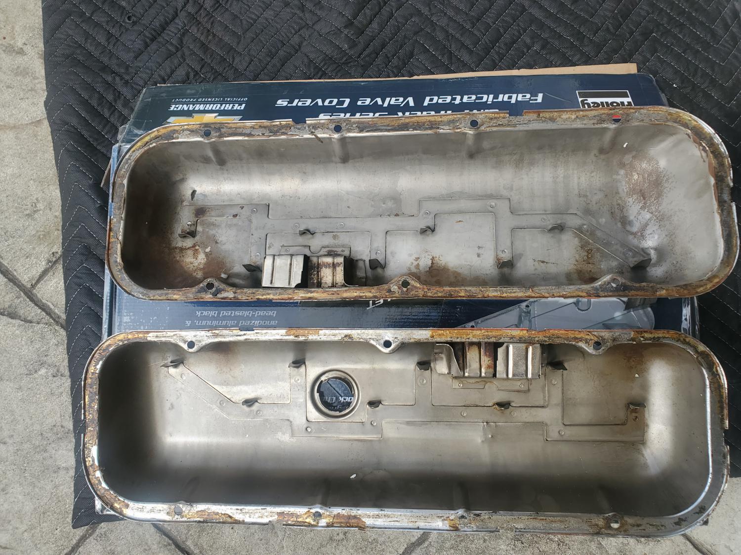 P 8 E 13 and vin is 18S420683 and looks like it was double stamped. Has all original GM gears and new M22 main shaft $1350. 1968 corvette oil pan off of a 427 tri power corvette with the trap door in good condition. These were used from 1965-74 for 396 427 & 454 applications $150. 1968 corvette factory chrome dripper valve covers off of a 427 tri power also used on 1969 applications as well $150. Can ship if you cannot pick up and can supply pictures as well. Any questions I can be reached at 330-770-2517.