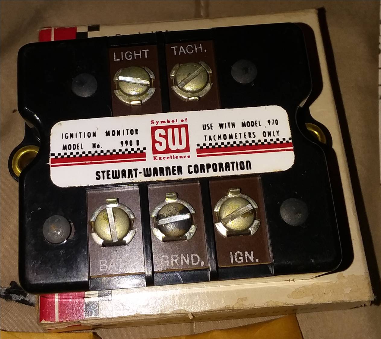 Selling one NOS Stewart Warner 977-J tach with NOS 990-B Monitor. Wiring is included and new.  The box is falling apart but I will include it.  N8 (August 1969) is the date on the box.  everything is in great shape.  $550 shipped   Paypal F/F preferred.  Will insure for shipping.