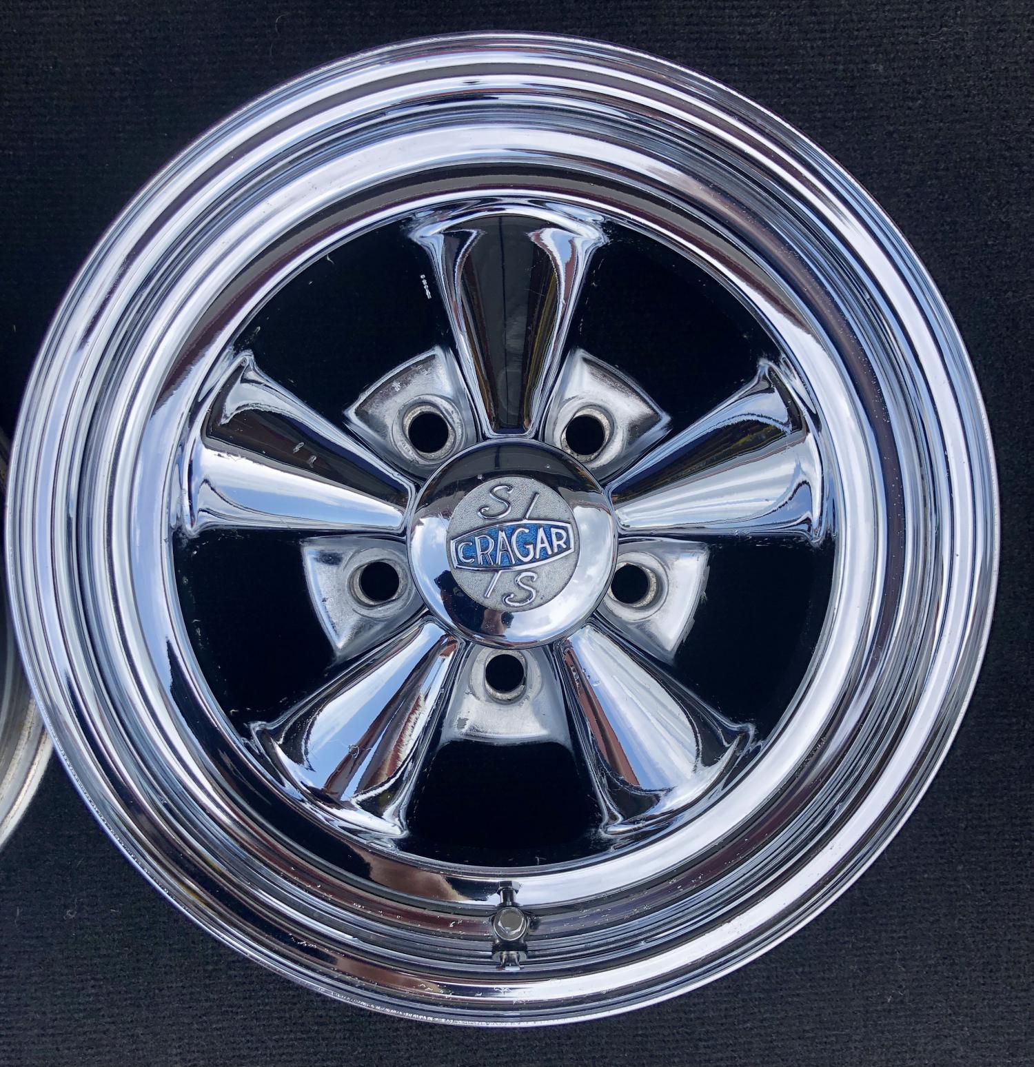14x6 very early Round Spoke “Vari-Fit” with GM 4 3/4 pattern. Original “Non R” caps. $350.00 plus shipping from Maryland to lower 48 states.
