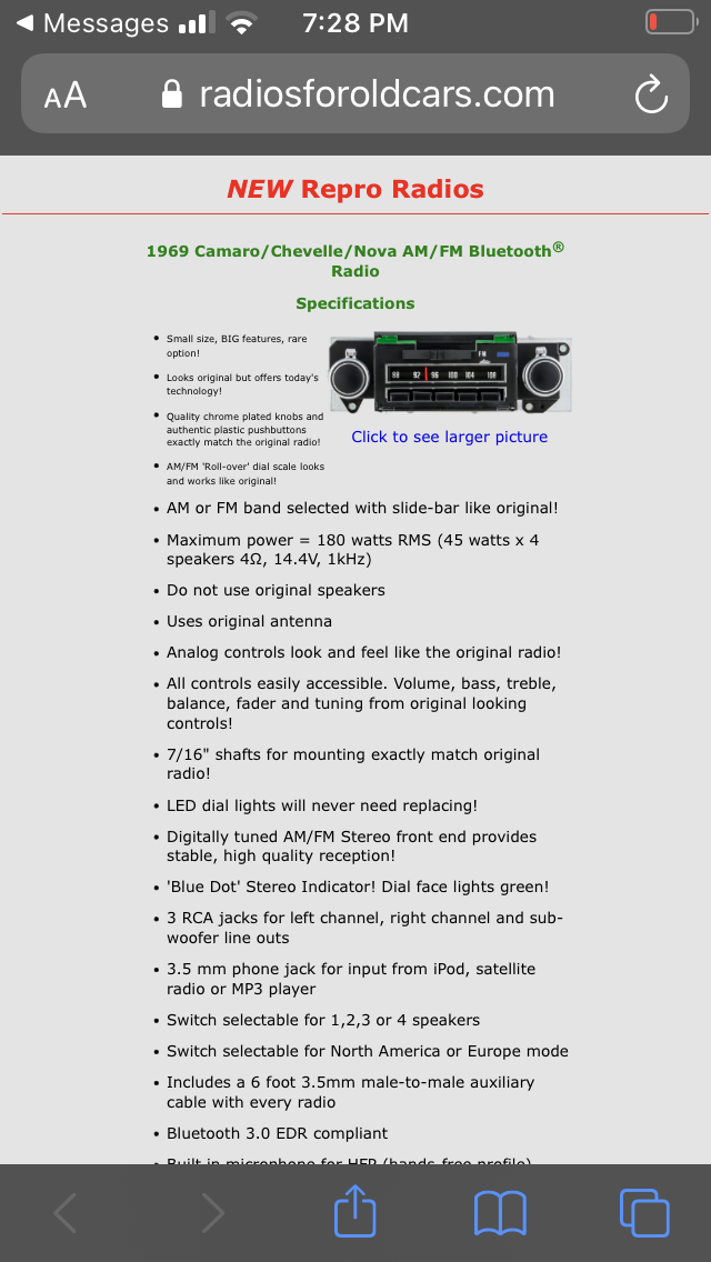 OK, I've debated for some time whether or not to use this in my car, but I don't think I ever will. I can't really hear the radio when I'm driving, certainly wouldn't expect to try and use Bluetooth with the top down or the car going faster than backing out of the driveway and honestly, drives in it seem to be so infrequent now that I just want to listen to "it". Bought almost as soon as they came out and has sat ever since. Never pulled out of the box more than to look at it and now, take photos. As shipped from the supplier with all directions and paperwork as shown. Never installed or hooked to power. These things retail for $700+ Here's their www https://radiosforoldcars.com/newradi...ellenova69.htm If you been considering one, now's your chance at 30% OFF $500 shipped & insured to the 48. Cheers all, Anthony |