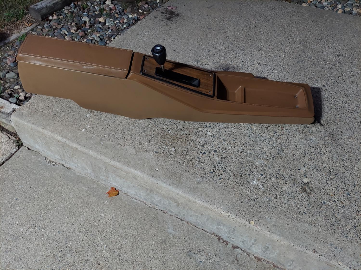 Very nice auto console tan in color. No cracks or breaks, the console door hinge is not broken and button release works great. Complete with shifter and cable. $500.00 includes FedEx shipping. No usps p.o box shipping.
