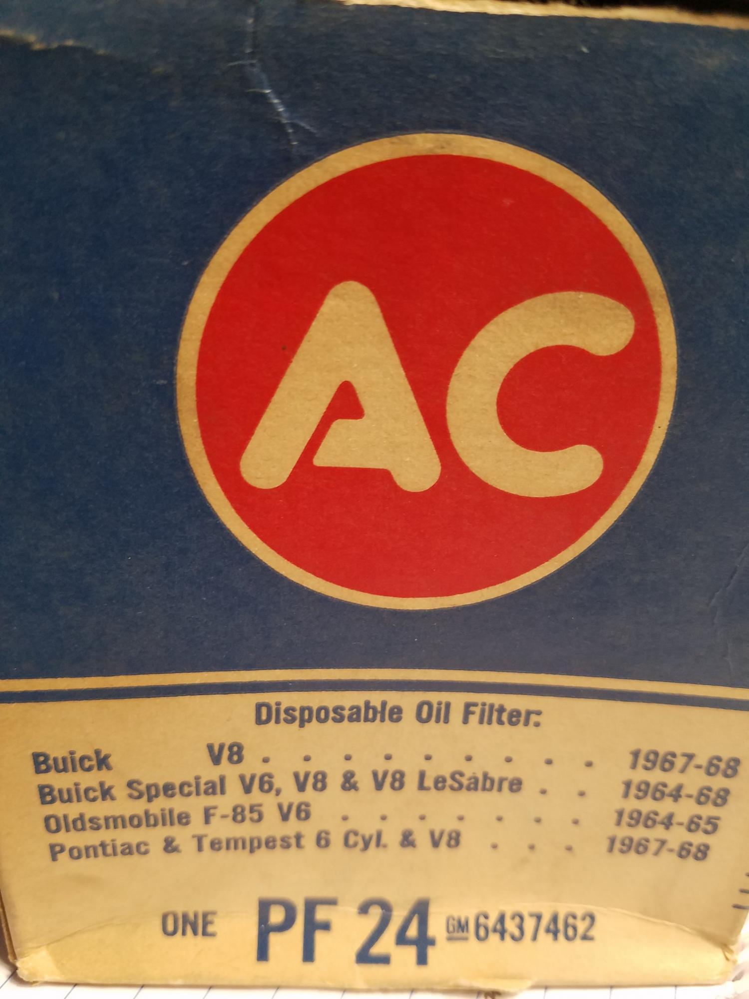 This is a 1968 oil filter. The application chart pictured shows used from 64-68 Buick, Olds & Pontiac.  $200 Shipped Contact me via PM or text 63one-514-9765