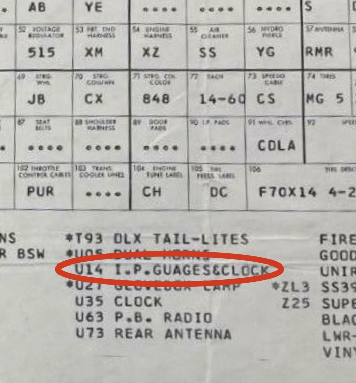 Not a lot of '69 Chevelles out there with a build sheet, window sticker, dealer invoice, etc. Very interesting to see 'Gauges' misspelled on the build sheet....