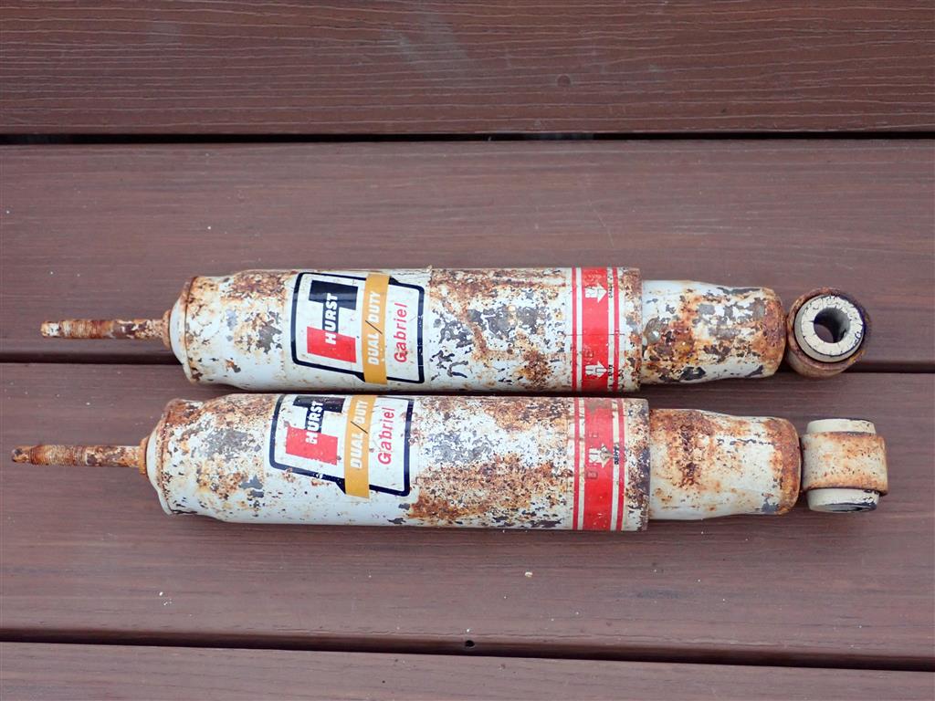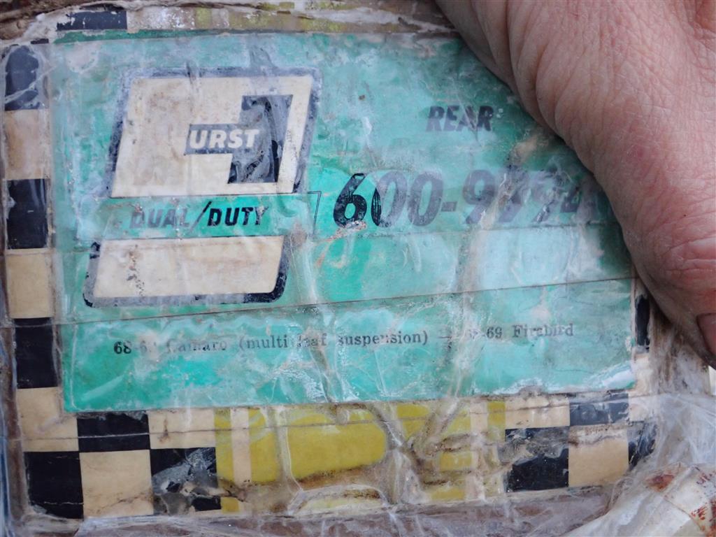 I have this New Old Stock pair of Hurst Gabriel Dual Duty Drag shocks on Ebay starting at $9.99 with NO RESERVE. The part number is 600-9994. These are made to fit 68-69 Camaros and Firebird with multileaf springs. These shocks have never been used or installed but were stored poorly and show cosmetic wear as shown. The good news is they were stored in the closed position so the shafts did not get corroded and both shocks still switch positions as they should and have good resistance.