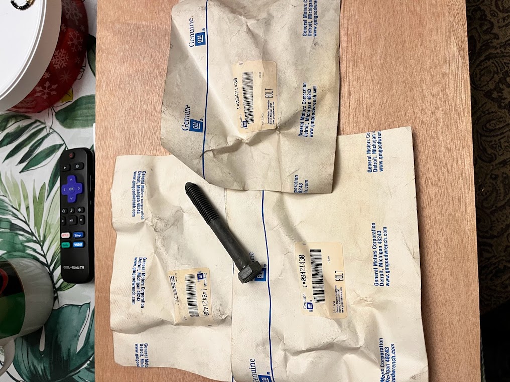 For sale is four NOS GM control arm bolts. Part# is 9421430. Three come in the original packaging and 1 is loose. $25 + shipping. PayPal F&F or money order preferred.