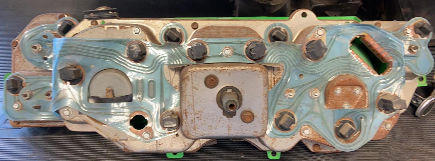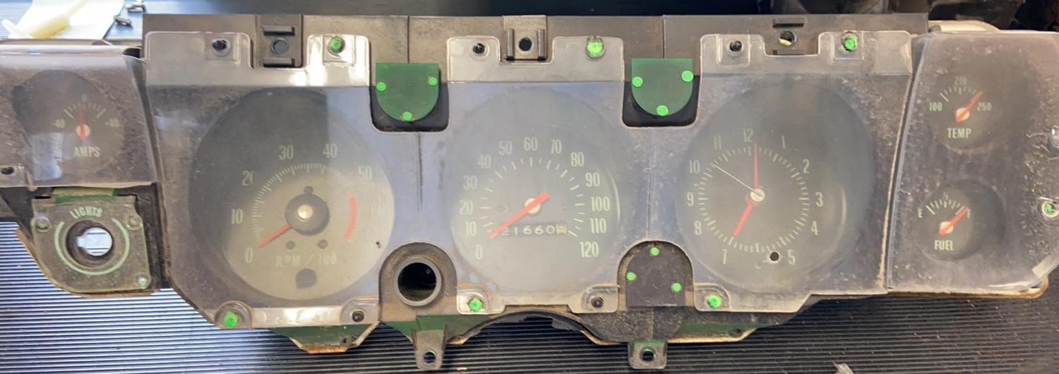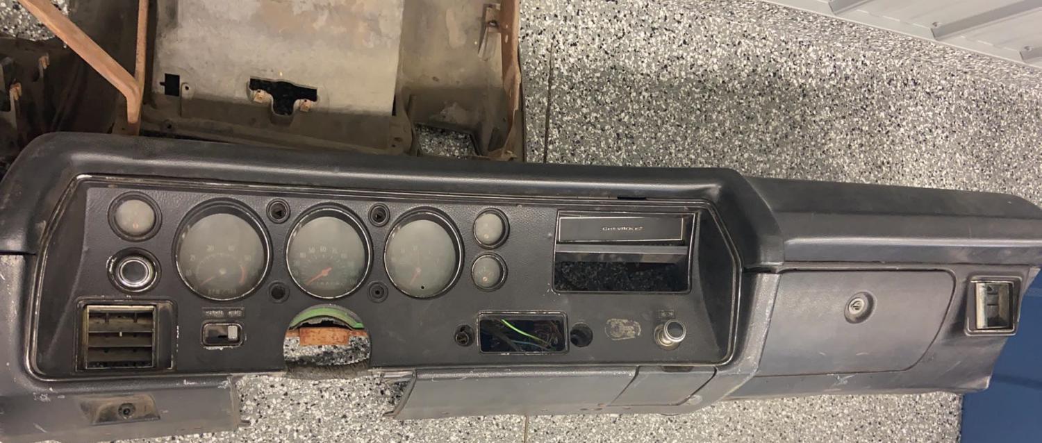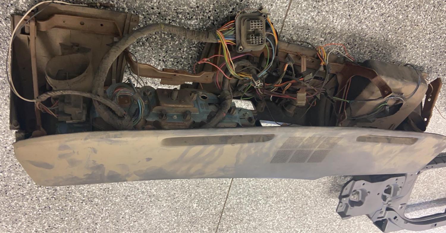 I included photos of the complete front dash assembly that the above gauge package and wiring harness came from originally. I do also have a few extra Dash pads for $400 each plus $50 Shipping, I have NO uncracked Dash housings.
