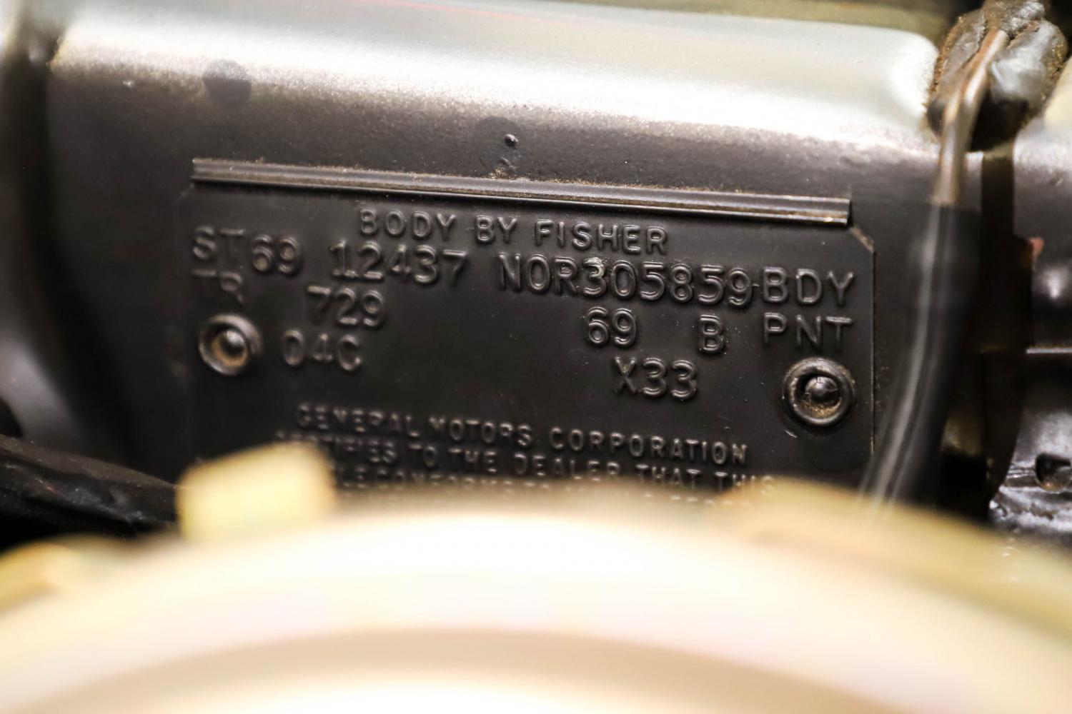"The tag on the firewall has code 72 72- correct for Hugger orange, no vinyl also has X22 code indicating SS396." The tag is a reproduction, not original to the car. The car was originally a 6-cylinder. That statement misrepresents the car, and may induce an unsophisticated buyer to act.