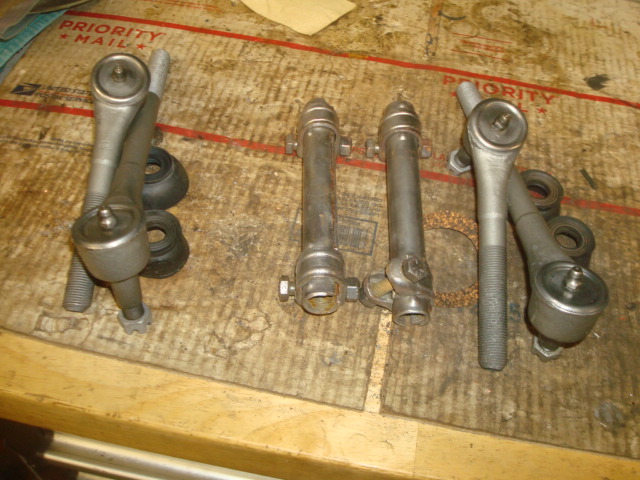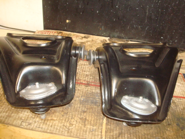rebuilt upper control arms very good original riveted ball joints boots have a couple tears some pitting on bottom of arms 300 sold very good original tie rods, boots and adjuster sleeves 275 SOLD original backing plates real nice shape 5463497, 5463565 275 I was just made aware one backing plate is camaro one is Chevelle sold original disc brake spindles 250
