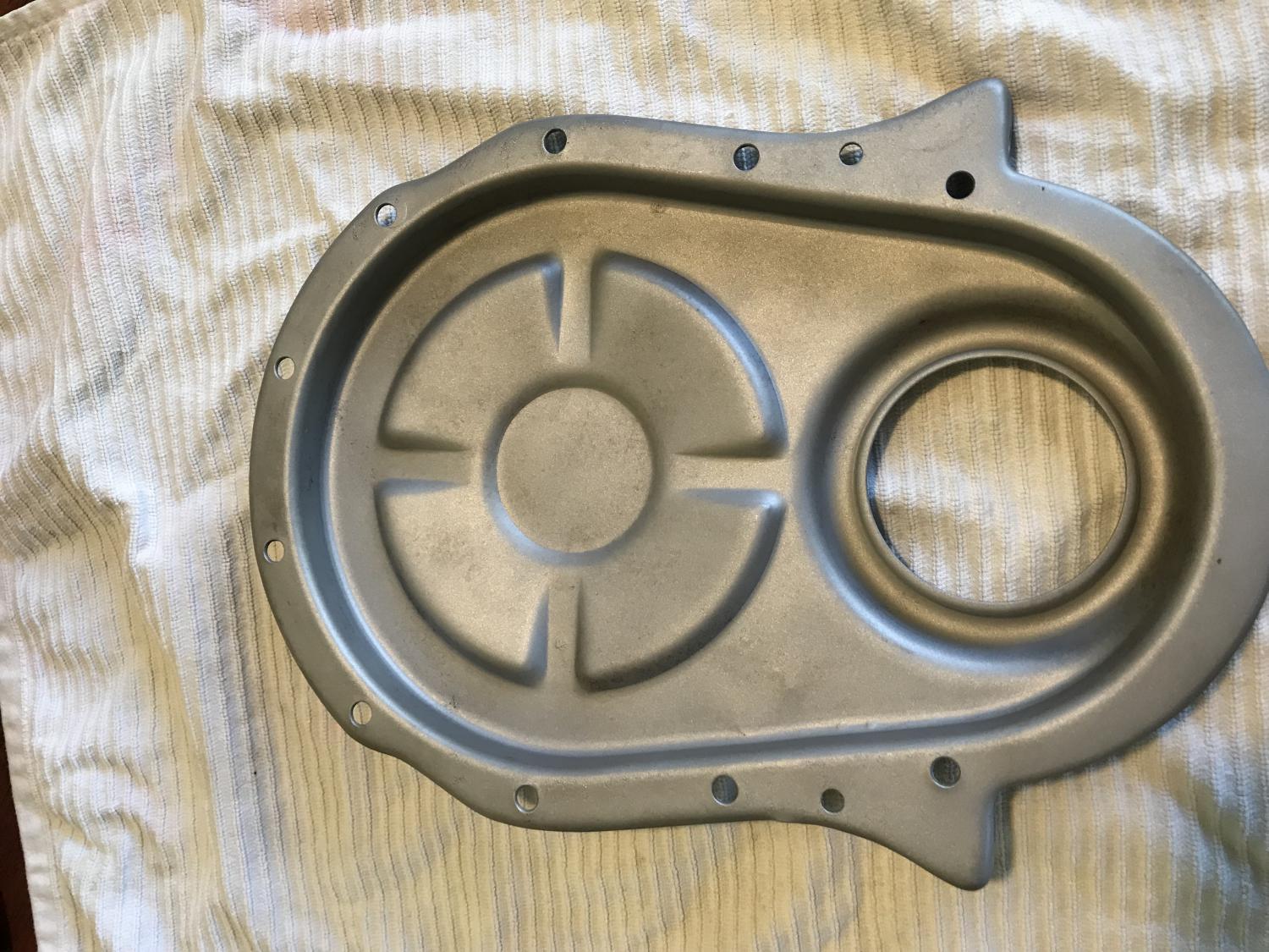 Hello AllI have a real nice standard (non-hi performance) timing chain cover that is date coded for 1970. Well, it it came off of a 70 Chevelle, but only has a 9 stamped on it. $75. plus the ride. Payment to be made by PayPal friends and family please. Shipping will be in a med ($18.10) or large flat rate box ($21.00) in the states ( I think it will fit in a med box). I will ship to other places as well but for actual shipping cost depending on where you want to ship it to. Item has been glass beaded and has very slight pitting in the outside middle portion.