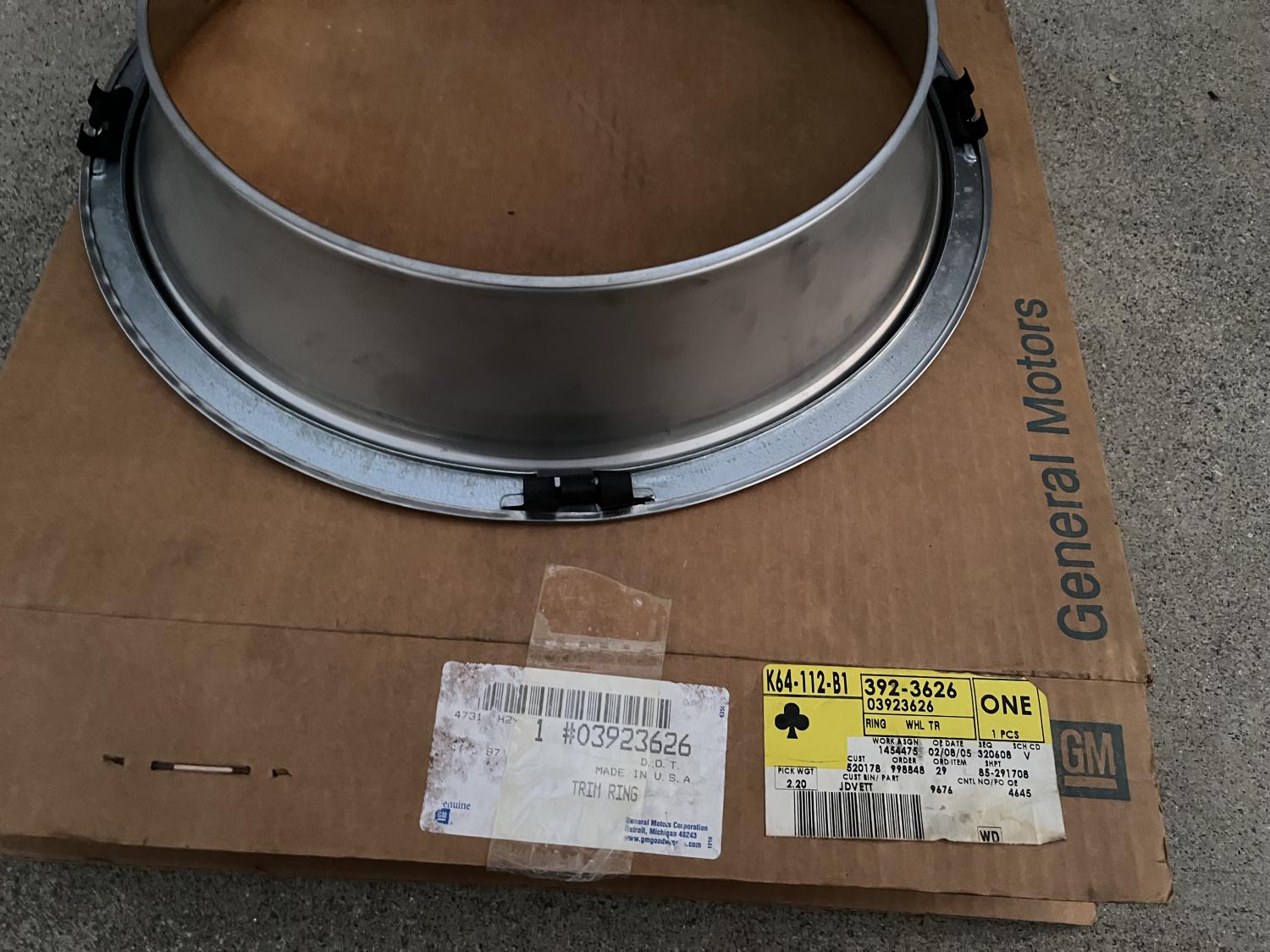 Hi Everyone,  I have an NOS GM trim ring available; just ONE. Likely a 2nd or 3rd design based on the retainer ring support and dated parts tag, but take a look at the photos. FOUR clip design of course. For 1969 up 15X8 wheels for certain - the AZ code, not sure if it'll fit a 1968 AG code rim. It's nearly perfect as shown (many detailed photos below) with expected NOS GM condition of that era. 300.00 PPG plus the shipping and insurance. Cheers all, Anthony |