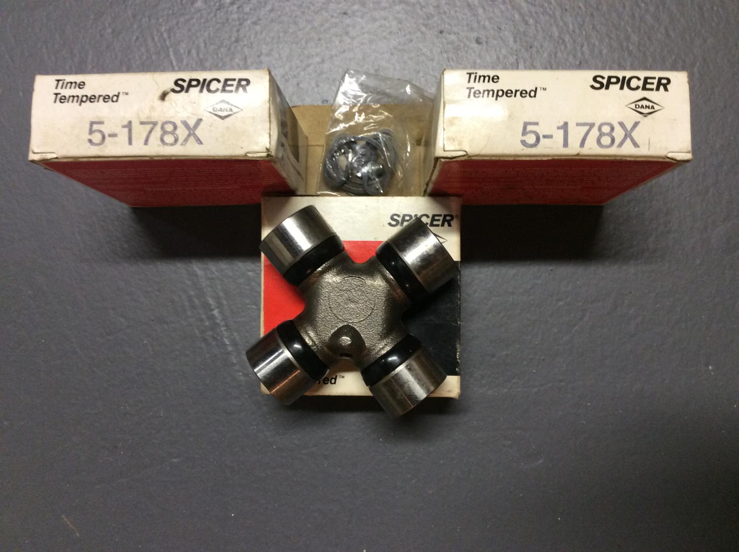I have three never used Spicer 5-178X series 1350 heavy duty U-Joints. They are used for multiple cars and trucks too many to list. The new Spicer joints have a blue band for the cup, but these have the black band. $20.00 each or three for $50 plus shipping.
