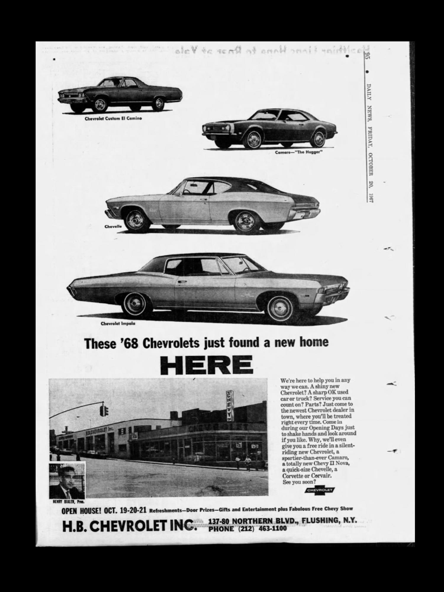 Does anyone know anything about the old HB Chevrolet Flushing Ny. Dealer code 132 in Zone 27.