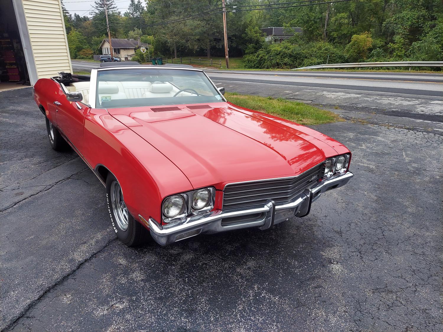 1971 Buick Skylark Custom Convertible...red with white bench seat interior.