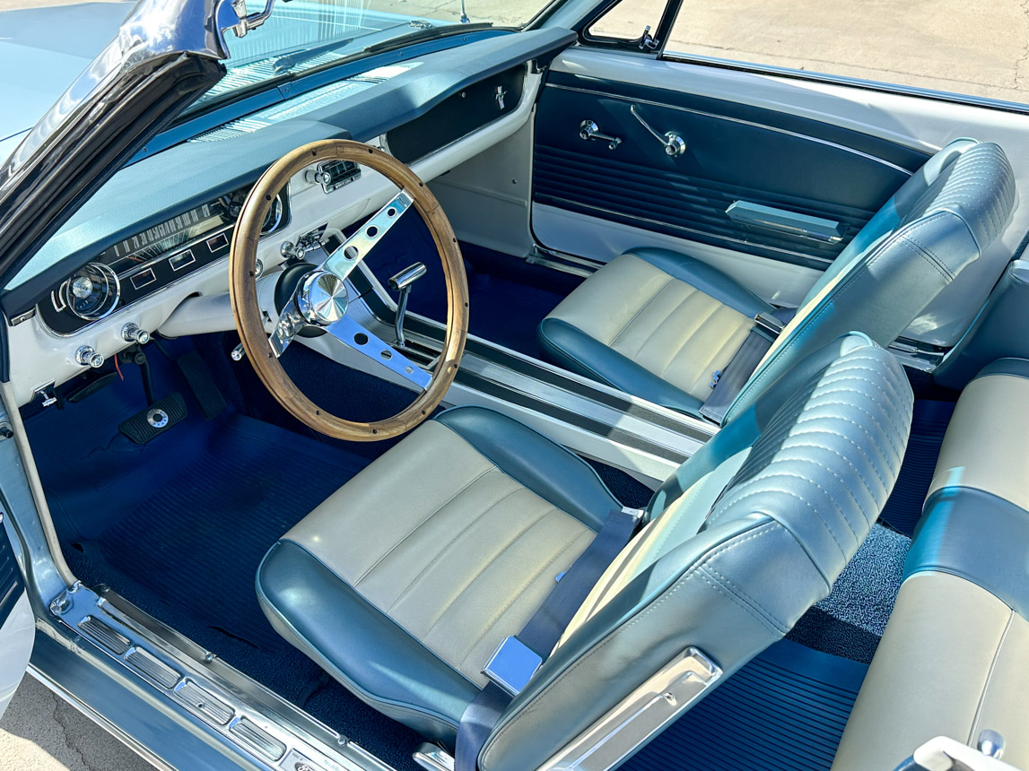 The '65 Convertible presented here has had a complete rotisserie restoration about 5 years ago and features a 289 backed up by a 3-spd. automatic. The color of Silver Blue looks great and complements the car perfectly! Options include, recently installed electronic fuel injection, power front disc brakes, custom Mustang-style aluminum wheels wrapped in B.F.G. radial tires, power steering, wood-rimmed steering wheel, power top, pony interior, upgraded AM/FM radio, console and custom interior lighting. This is a great driver and the perfect cruise mobile! Spring is just around the corner . . .