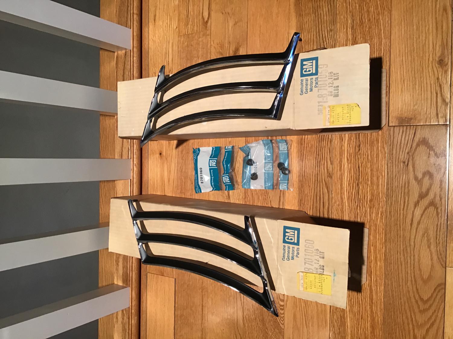 Very nice set of 1969 Camaro louvers. These boxes are dated 1982. The black trim paint is absolutely beautiful with no nicks,scratches or peeling. These are for that special car. The fasteners are the unique acorn style. The boxes are in mint condition as well. I just opened these to inspect them. $450.00 plus shipping.