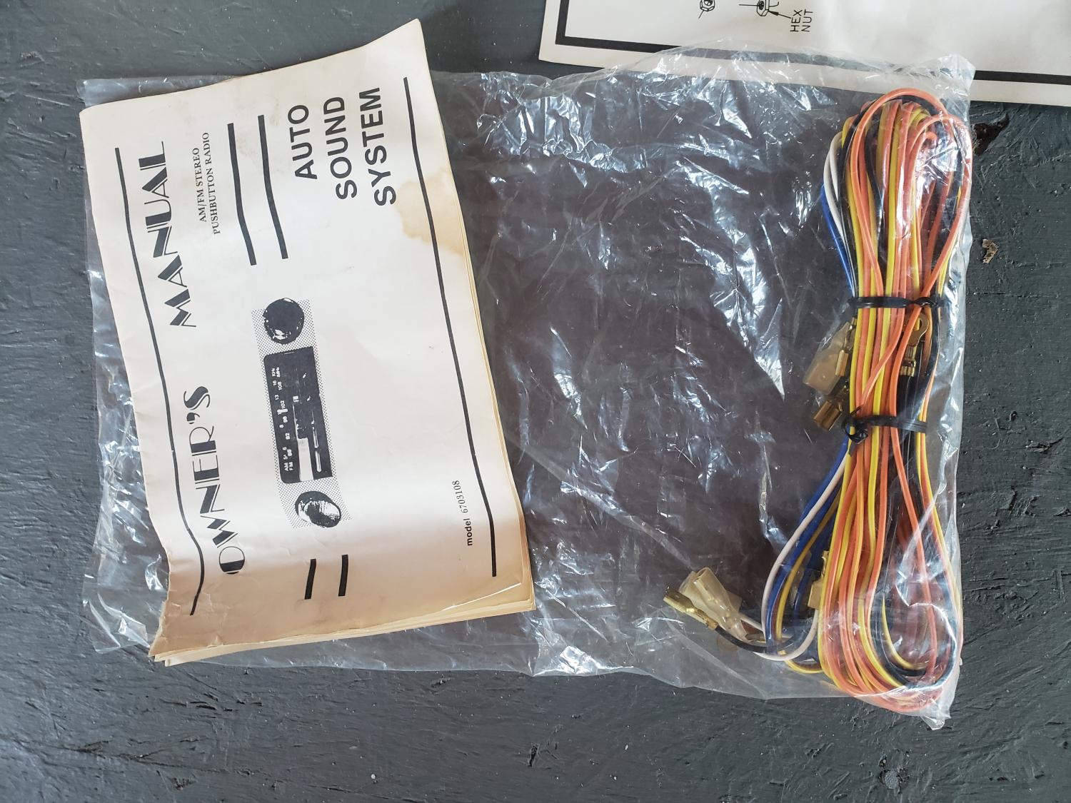 N.O.S. ARA in dash radio. I can't find a date on anything. Everything needed for a complete installation appears to be present. Very cool old piece, no damage.