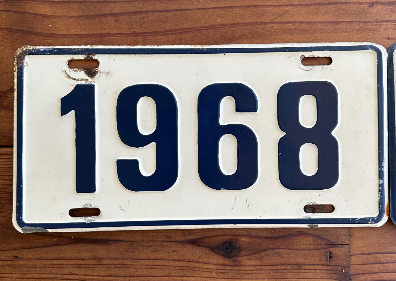 1968 dealer showroom license plates. Some blemishes, see photos. Very hard to come by.