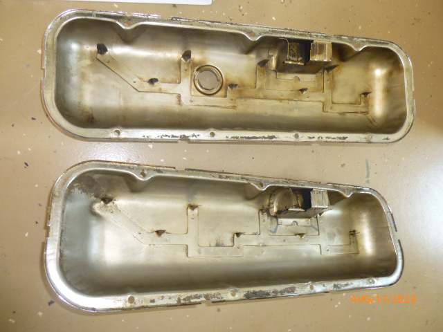This is obviously a very early take off set of valve covers for a 68 or 69 Chevelle. The Corvette may have used the same covers but I am not sure. There are a couple of very light scratches but they are beautiful original covers. $500 plus shipping.