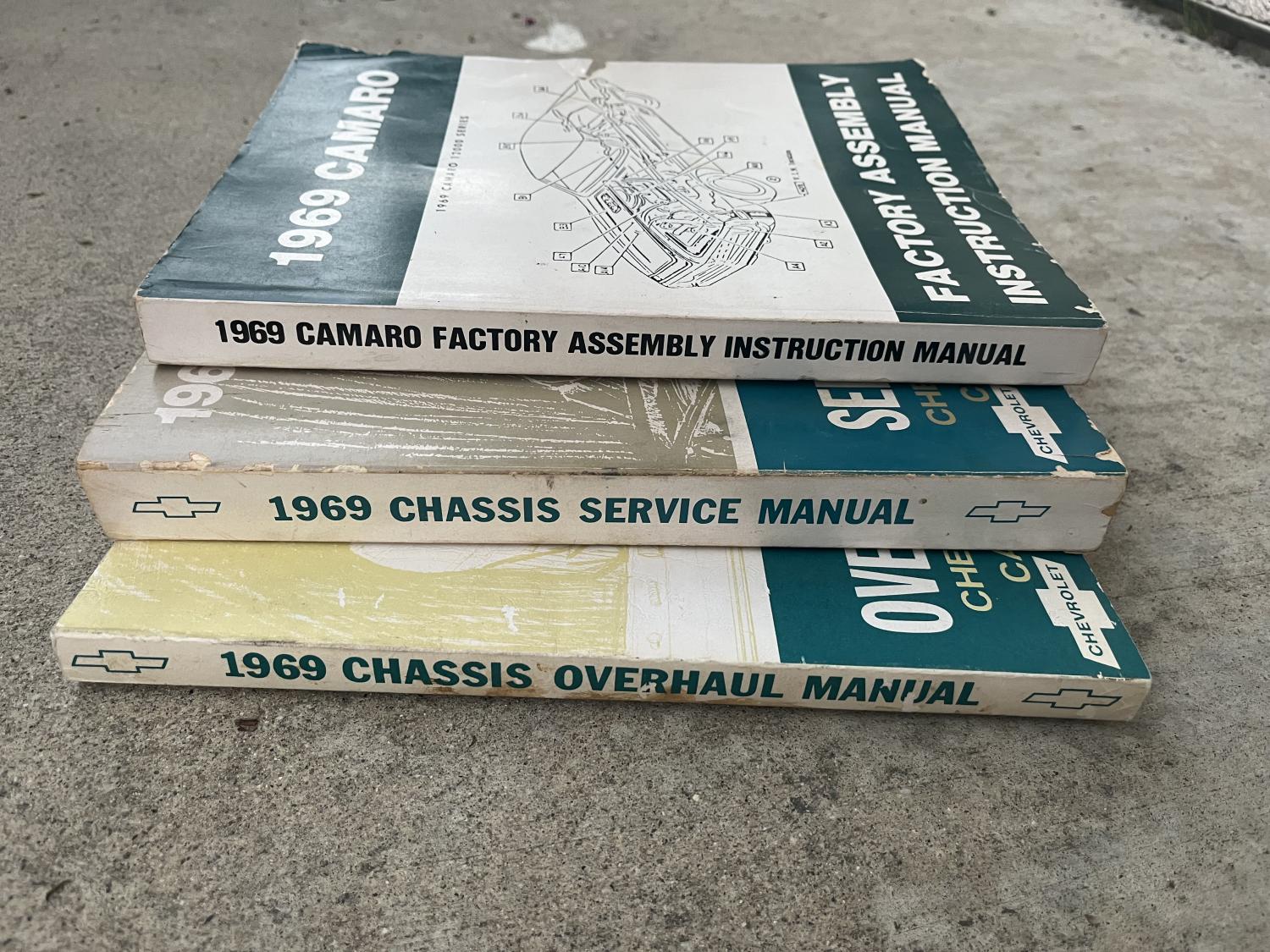 I have this set of three books available. The one, as shown, has a grease? stain that permeates the first few pages but is not fatal IMHO. This set includes a 1969 Camaro factory assembly instruction manual - the reprint that's been around for decades and it shows some age... The Chassis books are very likely original GM issues and show one shows more aging than the other. See photos. I prefer to hold a book myself when fiddling... 80.00 PPG shipped USPS priority to the US for the set of three. Cheers all, Anthony Last edited by AnthonyS; 09-29-2023 at 03:48 AM. Reason: typo |