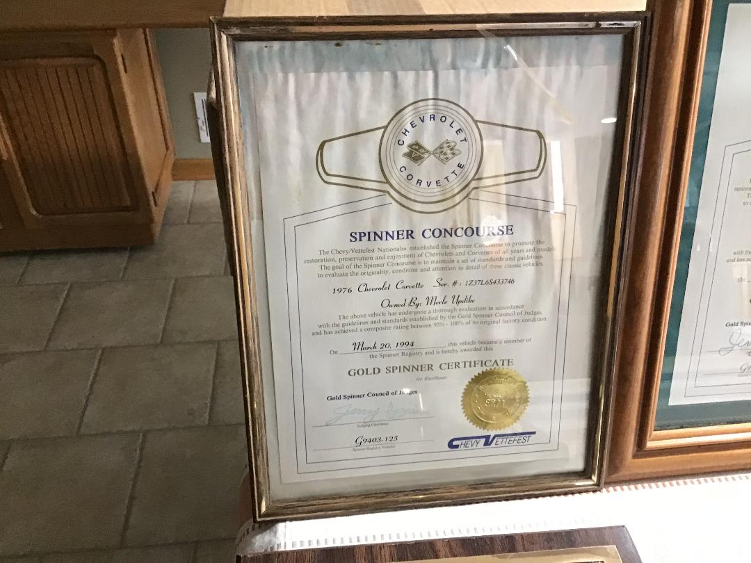 1976 Corvette Flame Orange / Saddle Interior. NCRS Top Flight, Bloomington Gold Certified, Chevy Vette Fest Gold Spinner and Showcase Certified along with a Triple Crown Award. Original Paint, Interior and Drivetrain. Loaded with every option available. Completely serviced to be driven or shown, everything works as designed. The nicest un-molested, original Corvette I have seen in a very long time, a True Time Capsule. All documentation from new includes all awards, and judging sheets. $32,500.00 PM me for any questions or comments. Bill