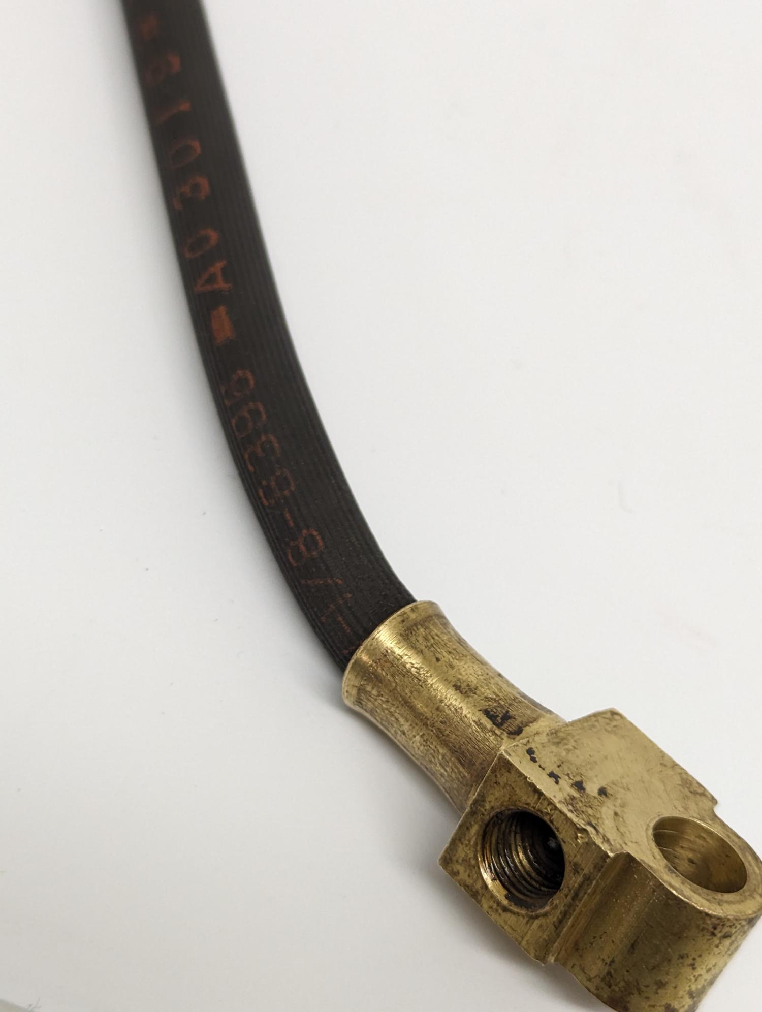 The rear hose came off of a 12 bolt rear end I recently purchased from a hoard and has no cracks or splits it has A03019 printed on it.