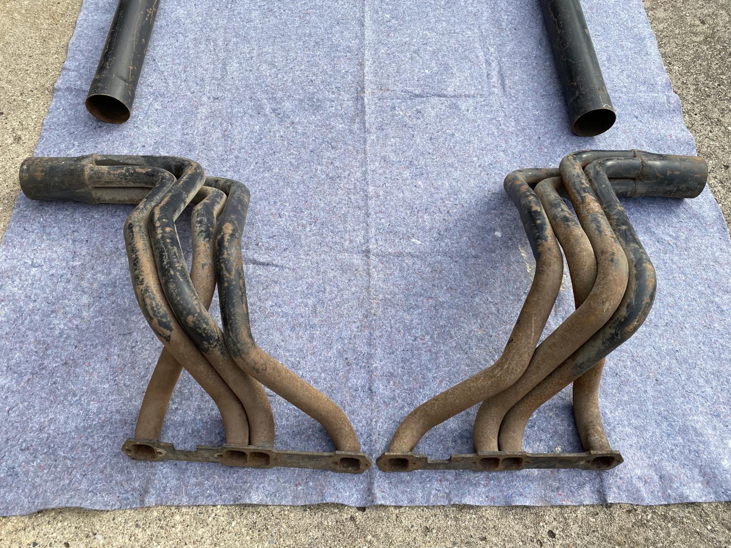 Folks, I have this super clean set of side exhaust, made by Kustom Headers of Flint, MI for the 63-72 Corvette (in fact they will probably fit all the way to 82). These are complete minus the muffler inserts which can still be purchased new. These are in great condition and still have most of the original dip paint with all the runs. There are a couple small dings from having been moved around in a garage attic since the late 1970s. My guess is these were run for a very short time, owner decided they were too loud, and removed. To me, this is as good as it gets for a C2 exhaust system. Looking for $1500, pickup preferred. Thanks sYc!