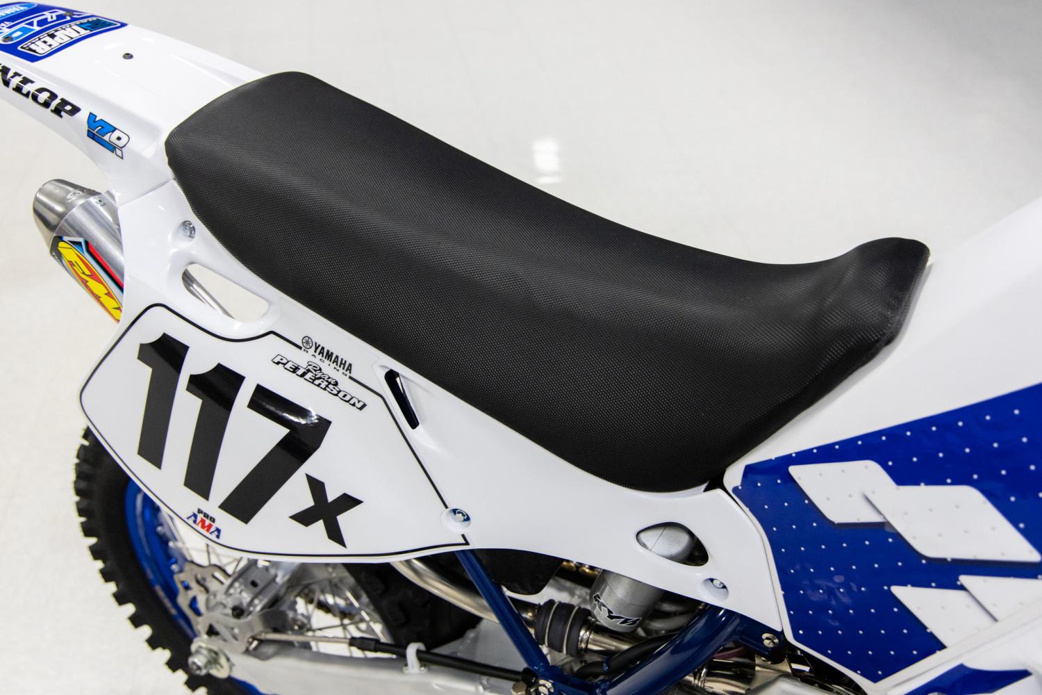 This 29-year old 1995 Yamaha WR250 is an outstanding example of a seldom-seen model on the vintage restored market. It was the product of a meticulous restoration by expert John Chang of Moto Scrub located in California. This no expense spared build is fully documented on a You Tube video. It was completed on August 22, 2022 with only 0.2 hours run time on the new Hardline Products hour meter. As the build sticker on the front forks indicates it was built for rider Ryan Peterson. The entire frame was stripped and powder coated blue. The frame was outfitted with new IMS Pro-Series foot pegs and a new Devol aluminum frame guard. The original two-stroke 249cc engine was completely rebuilt with new OEM parts. This engine was rated with 49.8hp from the factory. It's equipped with new VForce reeds by Moto Tassinari. The original Mikoni VM38SS 38mm carburetor and 5-speed transmission were completely gone through. The engine is liquid cooled and has new Devol aluminum radiator guards. The engine breathes through a new FMF Gold Series Fatty pipe which is carbon steel with a nickel plated finish for durability. The pipe is attached to a new FMF Turbinecore 2 spark arrestor. The seat has new foam and black cover. The original fuel tank was cleaned and reused. It was outfitted with all new UFO plastics and miscellaneous decals which are removable. It's equipped with new Pro Taper handlebars, pad and soft grips. The handlebars are setup with a combination of a Scotts and Ohlins steering stabilizer. The Cycra blue hand guards match the blue front fender. It rolls on new Takasago Excel blue wheels with restored hubs. The wheels are wrapped with new Dunlop Geomax tires which are 80-100-21 on the front and 120-90-18 on the rear. It's equipped with new Vortex spockets, DID 520 gold chain and carbon fiber chain saver. The suspension has an OEM stack. The front forks and rear shock were setup with new Race Tech Gold valves. The front forks have white plastic covers and seal savers. It was setup with all new single disc brakes throughout. It's equipped with a factory kick stand. A new Factory Effex Yamaha stand is included. This is a great opportunity! From the MS CLASSIC CARS Collection.
